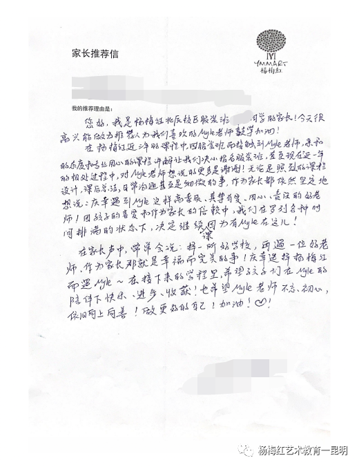 机缘巧合下,2017年8月我正式加入了杨梅红艺术教育,至今已经四年多的时间了,在这个过程中,我一直坚持自己的教学特点和授课风格,秉持着”在快乐中学习和收获,一步步成长,是孩子成长的见证者“的教学理念,收获了大量的家长认可和孩子的喜爱。未来在杨梅红艺术教育的工作中,期待收获更多家长的认可和孩子们的喜爱,同时带给孩子们更多知识和快乐。