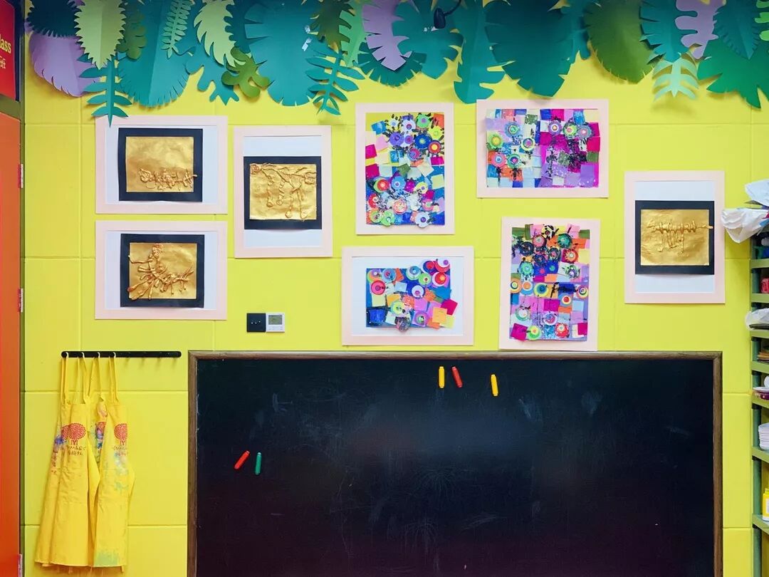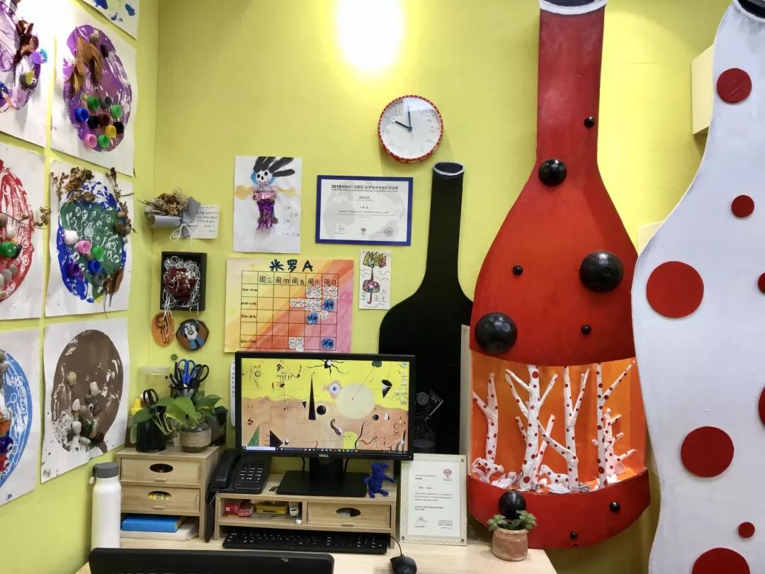 在杨梅红学校,我们一向认为在艺术的环境下学习艺术是最和谐的景象,让孩子们目光所及之处都有美和智慧,是杨梅红艺术老师的创作宗旨。