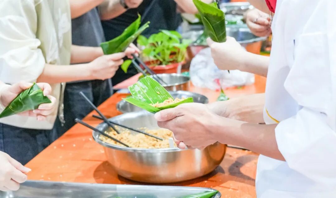 现场也为同学们开展了“包粽子”教学