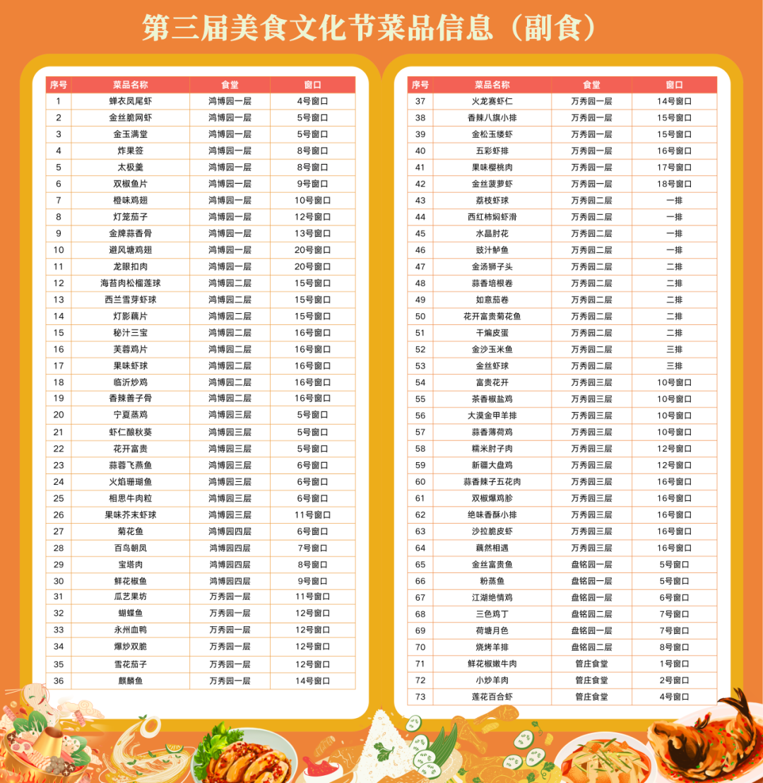 地点:鸿博园、万秀园、管庄食堂、盘铭园