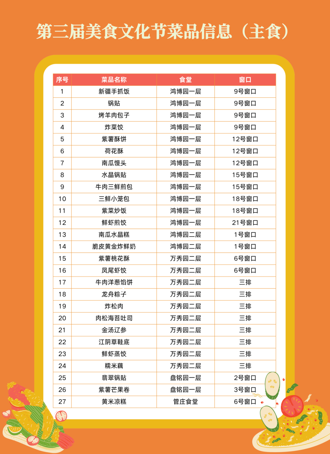 其中主食27道,副食73道
