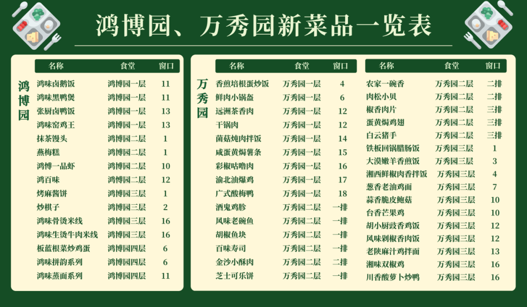 万 秀 | 1F | 绿豆汤 | 玉米粥 | 柠檬水 | 红豆薏米水 | / | / |