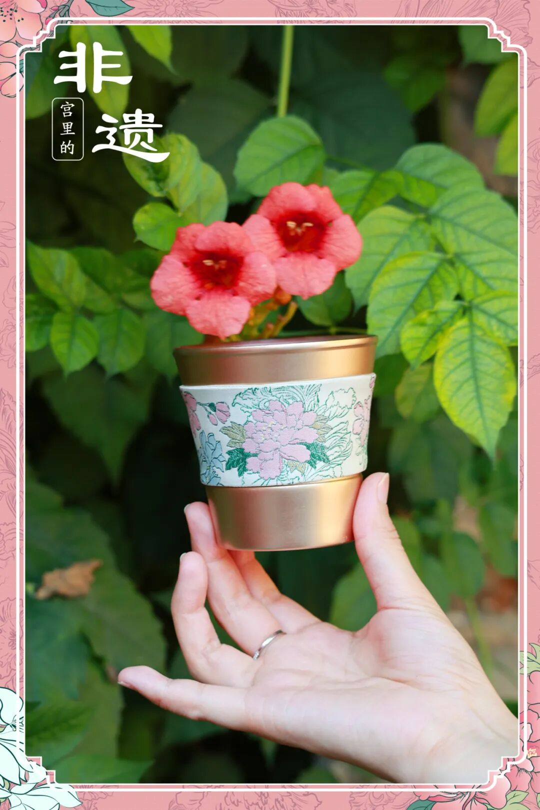 “五彩十二月花卉纹杯” 为创作灵感