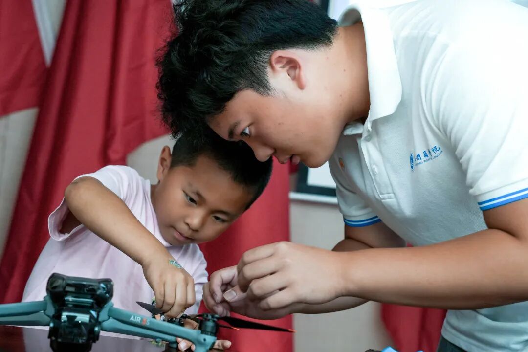 此外,实践队利用无人机进行航拍,向学生展示家乡的空中视角。从高空俯瞰熟悉的家园,孩子们眼中不仅是风景的新奇,更是对世界认知维度的拓展。
