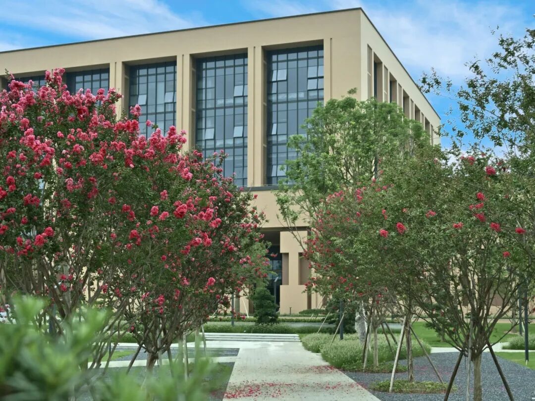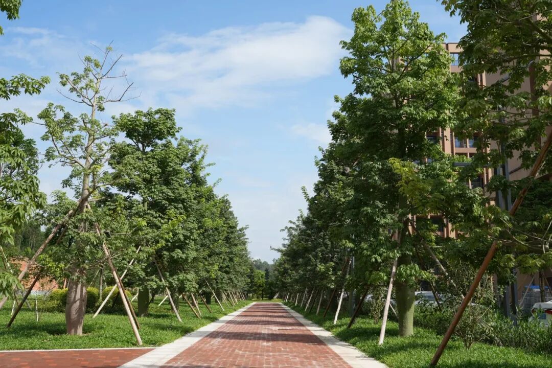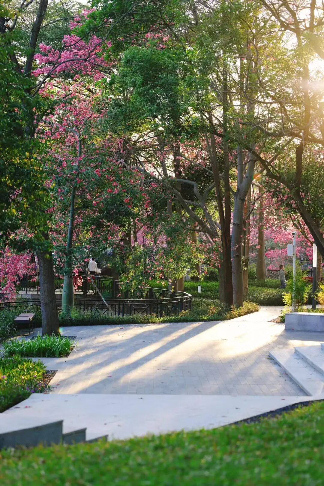 在这里,树不是温顺的陪衬,而是敢伸展、敢碰撞、敢与建筑共舞的生命体——它偏要和楼宇试比高,让楼甘愿为花影留足舞台,让风携着叶响与花香漫过校园,把自由的韵律,都织进了每一步的轻盈、每一阵的风吟、每一缕的芬芳里。