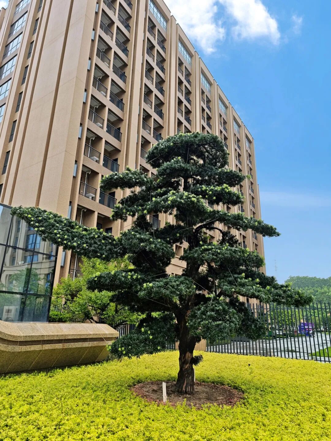 迈入校门,迎面便是一片绿意盎然的景象。罗汉松傲然屹立于入口处,张开那墨绿的羽状枝叶,在晨光中熠熠生辉,仿佛正热情地与身旁的教学楼击掌相庆,欢庆校园的勃勃生机。而另一侧的乔木则显得格外张扬,它们不管不顾地向上窜升,粗壮的枝桠倔强地戳向高远的天空,仿佛在向行政楼那光洁的玻璃幕墙发起无声的挑战,执意要一较高下,争夺这片天地间的瞩目焦点。