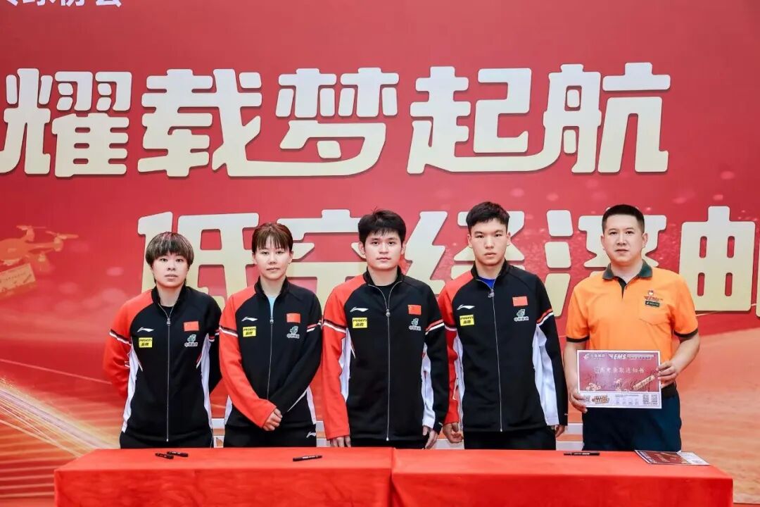 北京邮电大学党委书记续梅,校长徐坤,中国邮政集团有限公司寄递事业部副总经理、中邮无人机(北京)有限公司执行董事许宁,中国国家乒乓球队运动员林诗栋、向鹏、王艺迪、陈幸同出席活动。