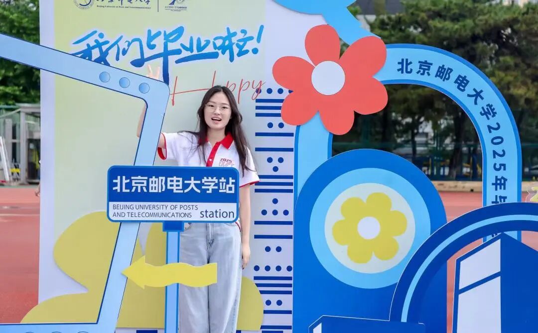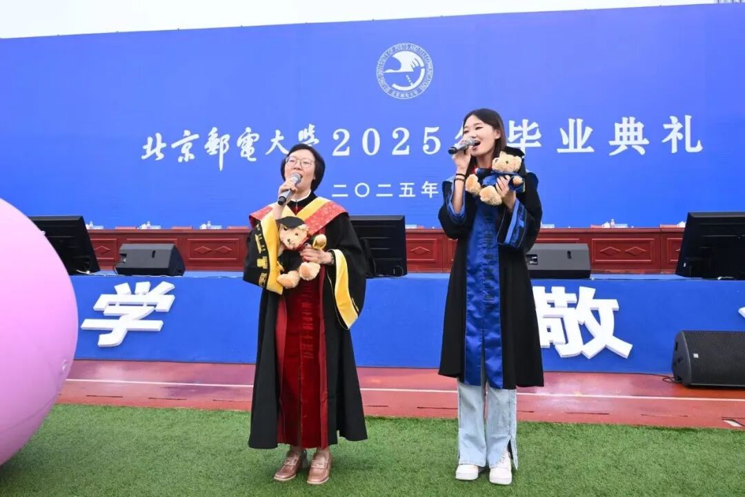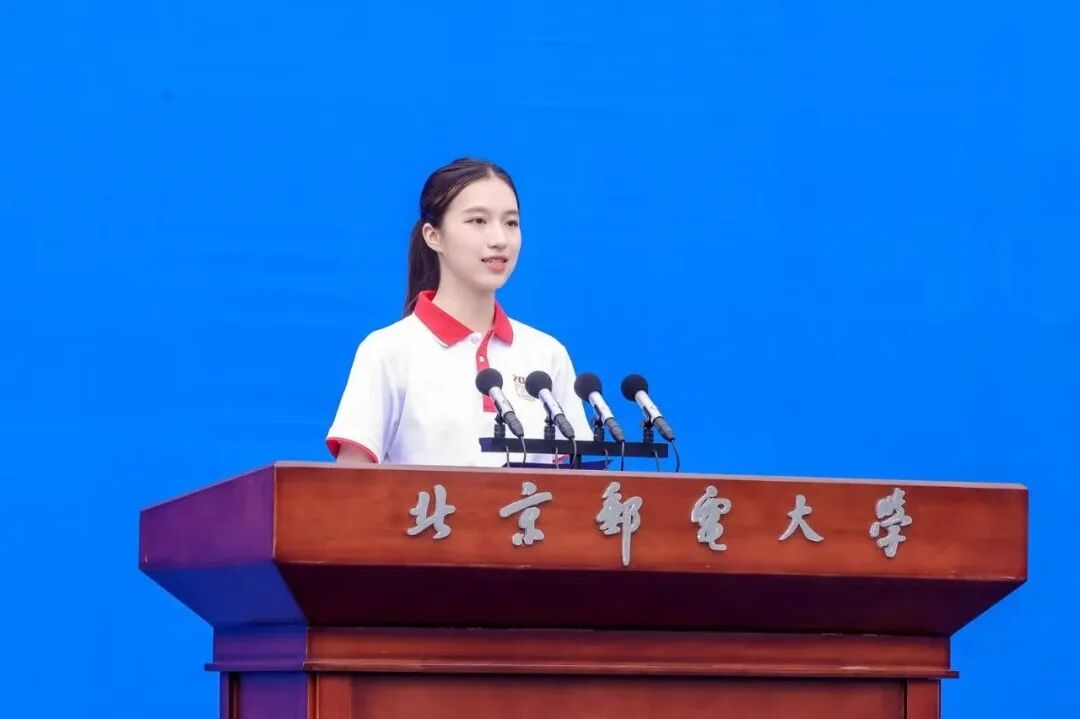 信息与通信工程学院本科生黎明月作为本科生毕业生代表发言。她用“与光同行”总结了四年北邮时光,表示必将牢记母校嘱托、胸怀家国情怀,为信息科技事业发展贡献自己的青春力量。