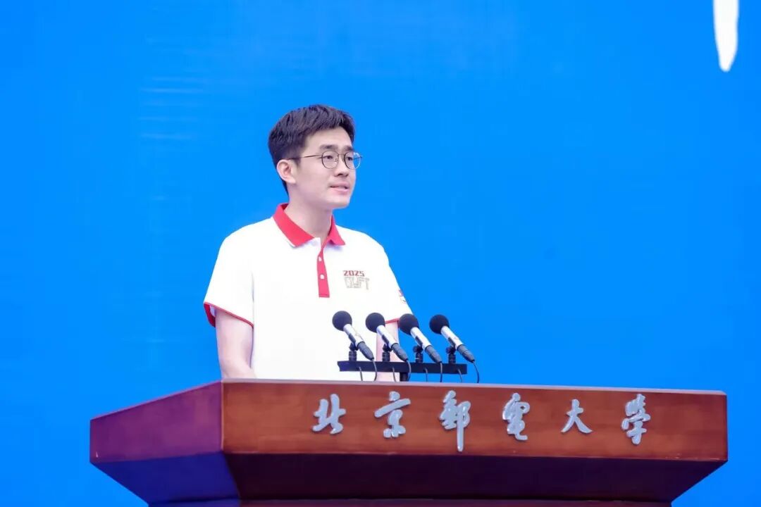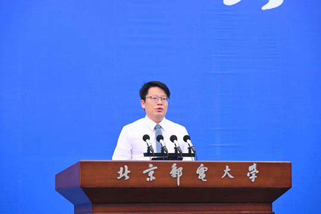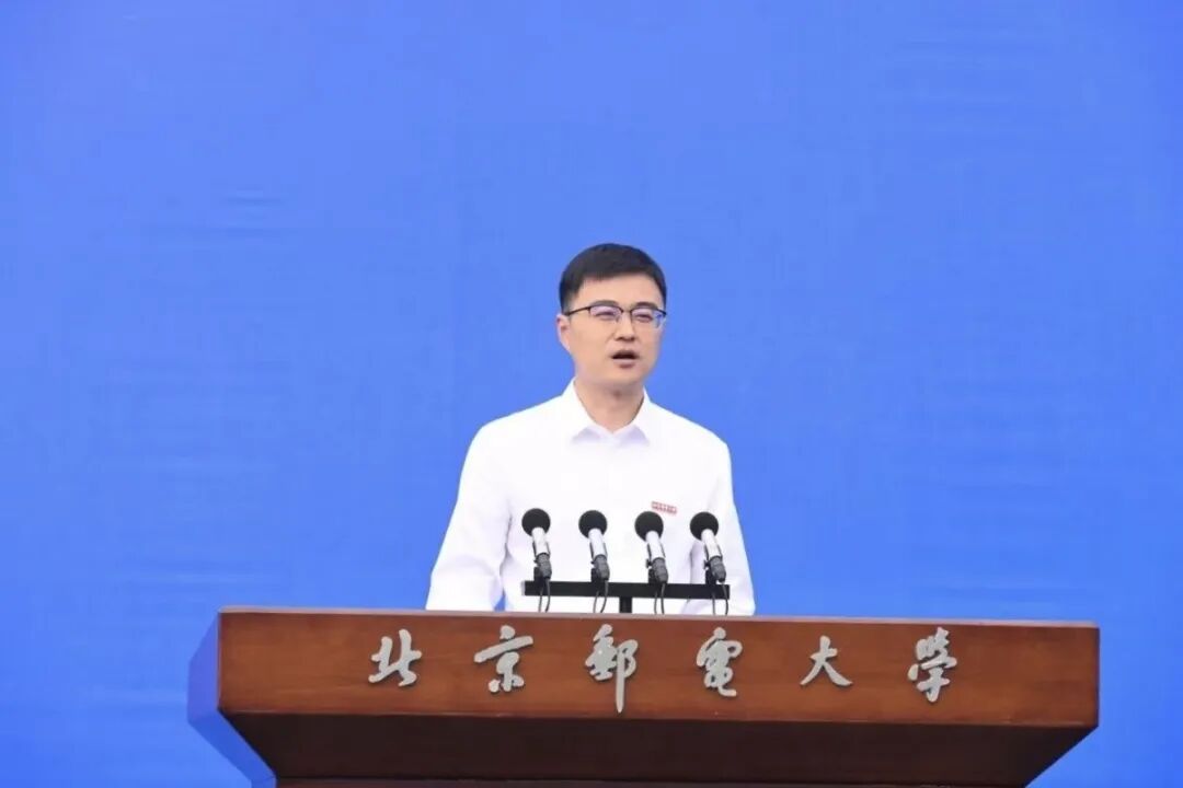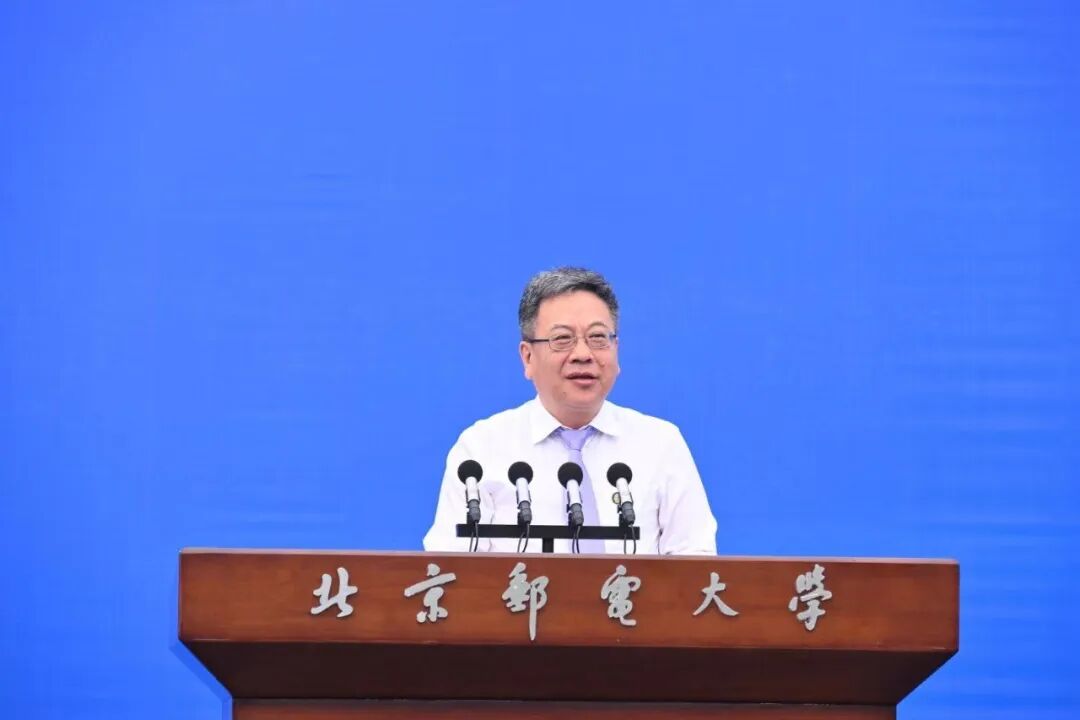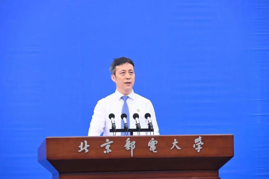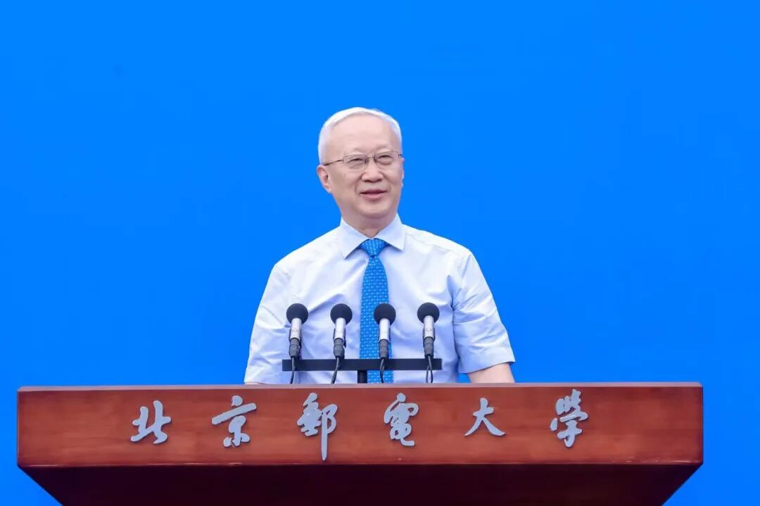 费爱国作为校友代表深情回顾了50年前怀揣求知渴望踏入北邮校门,求学后潜心科研、矢志报国的经历。他勉励同学们,要永远保持对科学的热爱和对未知的好奇与探索,以“终身学习”应对岗位挑战,把人生目标与国家需求对齐,让自己前进的脚步与国家前进的步伐共振,在网信报国、科技强国道路上勇担使命。他寄语同学们要以青春奋斗勇立数字时代潮头,为中华民族伟大复兴贡献北邮力量。