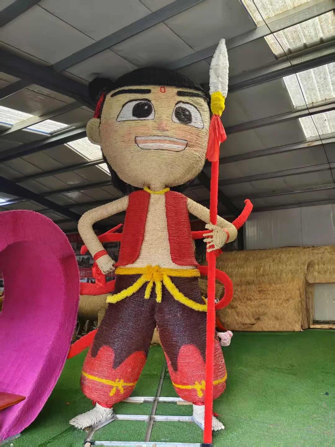 实践团刚踏入公司的大门,此起彼伏的惊叹声便不绝于耳。展厅内陈列的秸秆编织艺术品令人目不暇接:威风凛凛的“巨无霸哪吒”、惟妙惟肖的大象、憨态可掬的龙猫……这些充满创意的作品将普通的农作物秸秆变成艺术瑰宝,构筑出一个令人流连忘返的生态艺术空间。