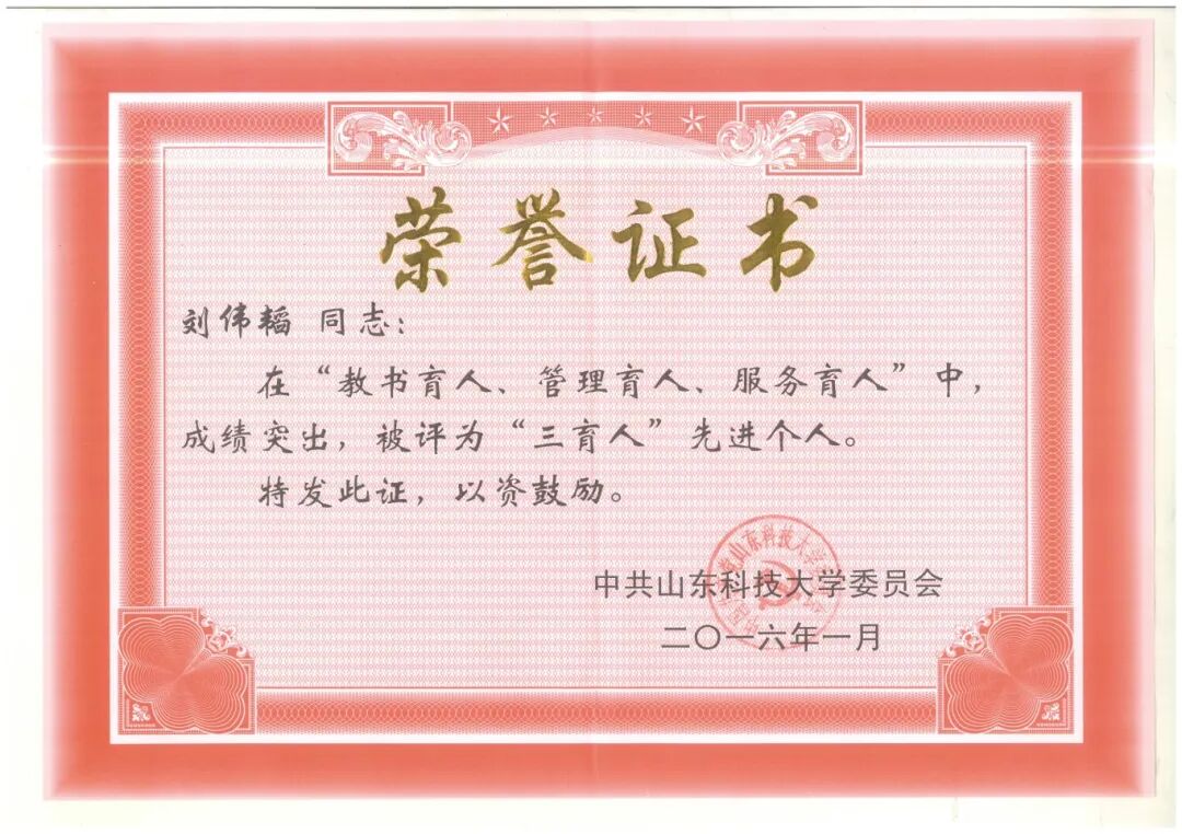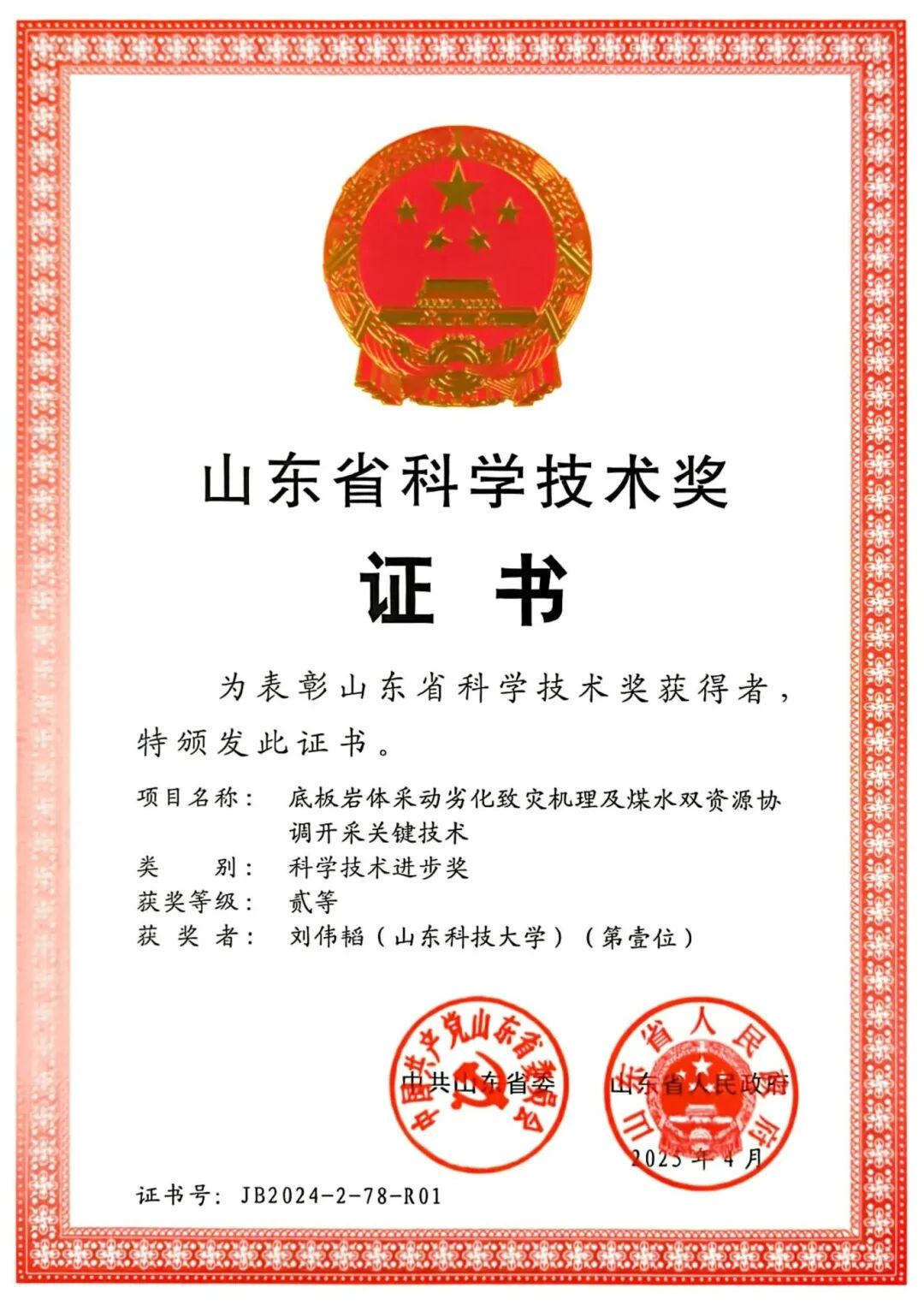 刘伟韬教授的敬业奉献赢得了广泛赞誉:山东省先进工作者、“国务院政府特殊津贴”专家、山东省有突出贡献中青年专家、山东省教育系统劳模和优秀人才创新工作室、煤炭行业(教科研人员)技能大师。他身兼中国煤矿开采损害技术鉴定委员会委员、中国地质学会矿山水防治与利用专业委员会委员、中国煤炭协会矿区勘探与水害防治专家委员会委员等要职。沉甸甸的荣誉,映照着他三十一载不变的初心。
