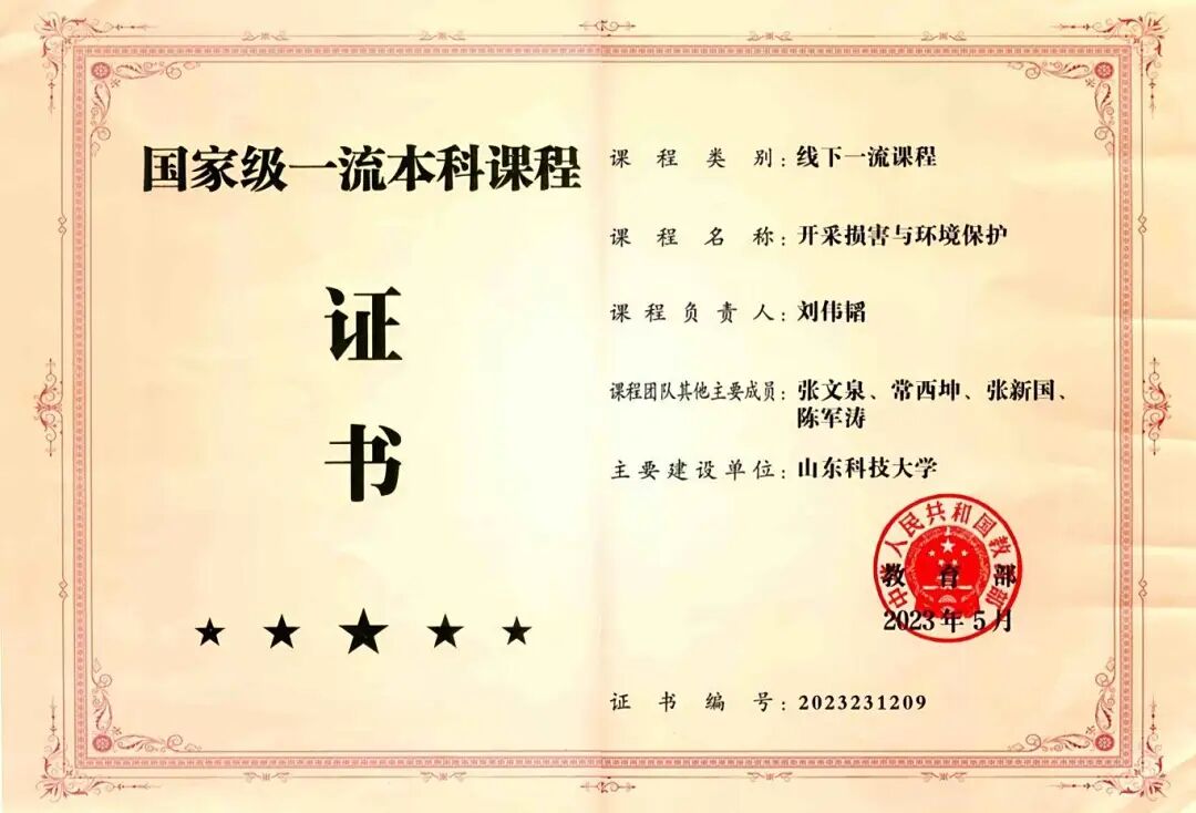三十一年如一日,刘伟韬教授始终坚守本科教学一线,致力于教学改革与创新。他长期主持省部级重大教学改革项目,领衔建设的《开采损害与环境保护》课程,从国家级精品课程、国家级精品资源共享课,到成功获批国家级一流本科课程,持续引领专业发展。他作为主要完成人参与的教改成果获国家级教学成果二等奖、山东省教学成果特等奖;主持完成的成果获山东省教学成果一等奖、全国煤炭教学成果特等奖。在他带领下,学院获山东省专业特色学院、采矿工程课程思政示范专业,他领衔的《矿山灾害防治教学团队》获山东省示范性基层教学组织、《矿山绿色开采与环境保护》教学团队获评煤炭行业优秀教学团队。