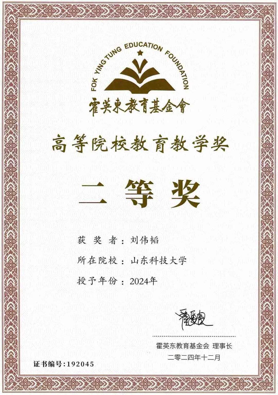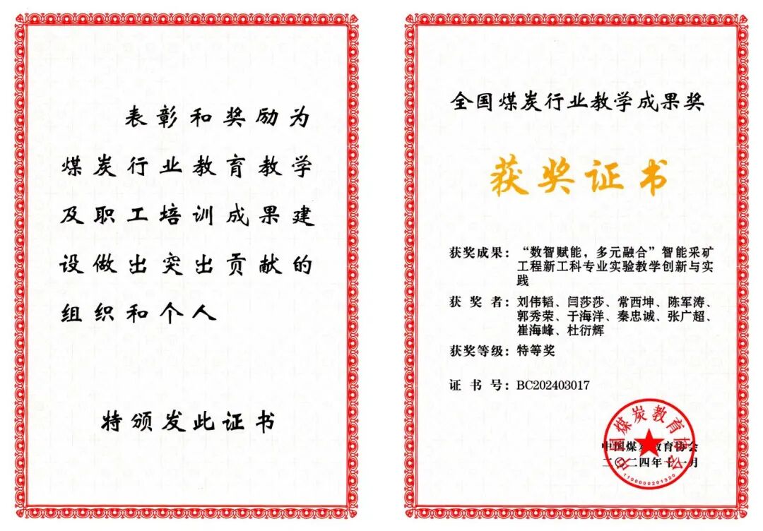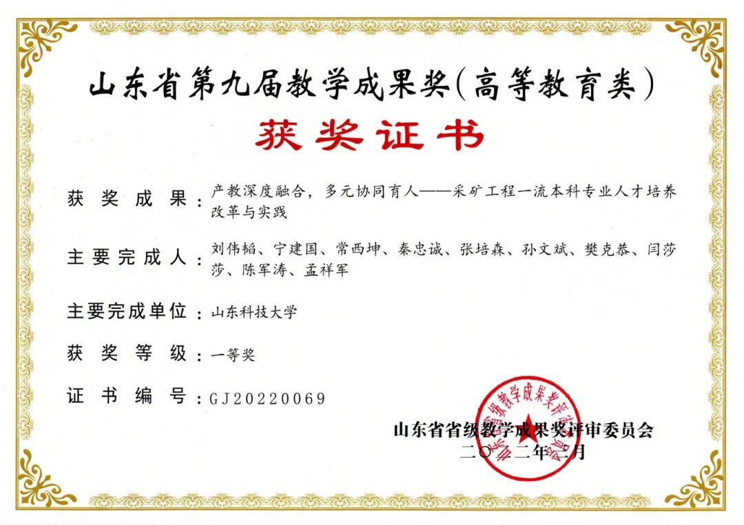 他创新提出“四化融合”实验实践教学范式,开创本科生海外实践的“科大先例”,指导学生在全国“挑战杯”等顶级赛事中斩获国家级银奖,指导学生发表高水平论文、获得专利授权数量众多,育人成效斐然。个人荣获“山东省高等学校教学名师”“全国煤炭教育先进工作者”“青岛教书育人楷模”等多项荣誉。