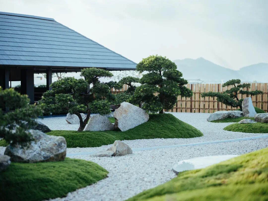 由日本当代景观大师户田芳树打造的九山八海之庭,正对着隐约若现的群山和绵延的谷间草地。在白砂、青苔与置石间,不妨留心来自热带的南洋杉、铁冬青、海岛栀子等植物,偶遇一场缤纷的花事。