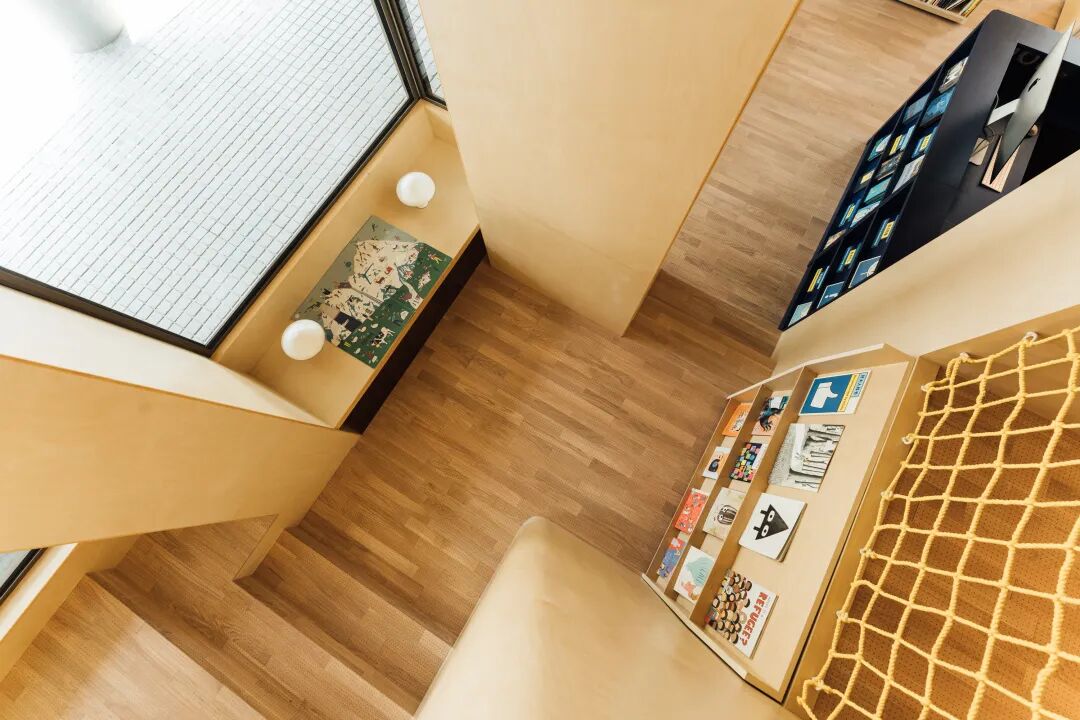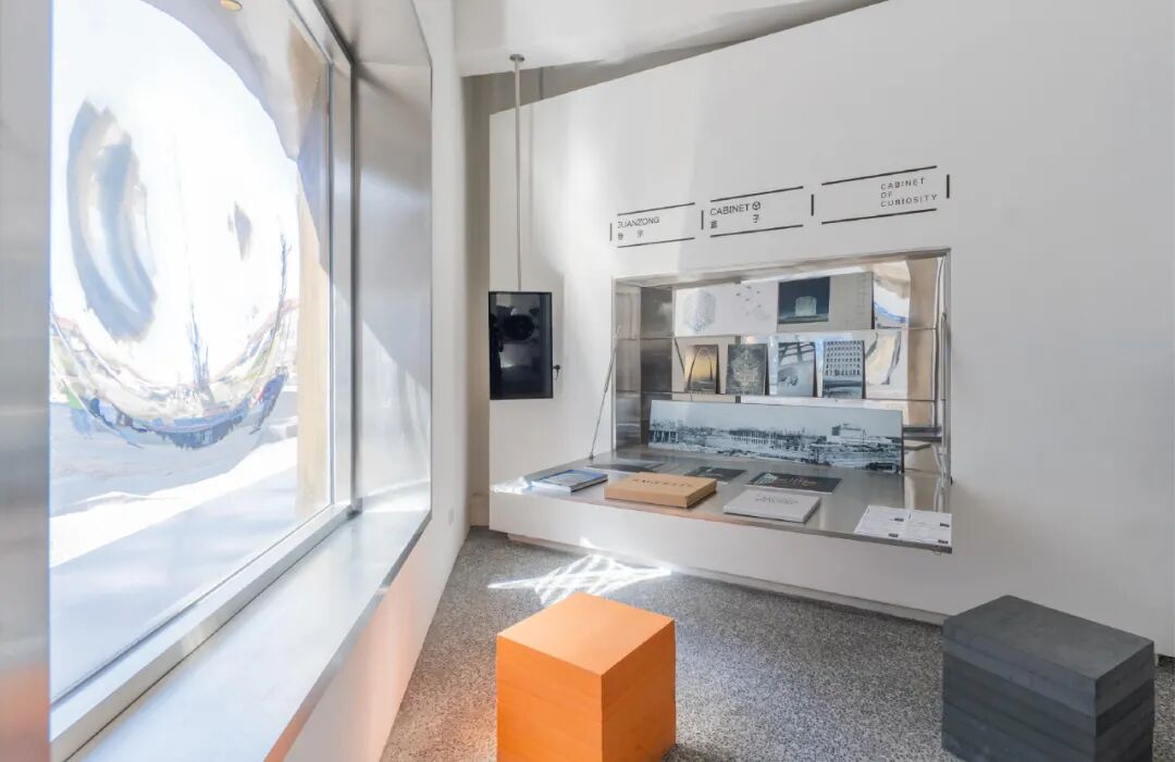 因此,除了书店空间,店内还有一个专门做实验性展览的策展空间——「卷宗盒子」,凹凸透镜玻璃窗、万花筒效果的门、折叠壁柜、漂浮书架等元素,共同传达一种态度:我们期待有不同的视角和多变的实验性可能。