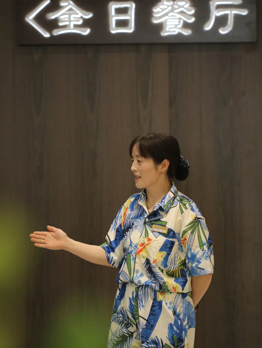 全日餐厅里,餐饮小姐姐们穿梭其间,为您端上各式风味佳肴。“每一道菜都是我们精心的安排,让味蕾也来一场说走就走的旅行。”