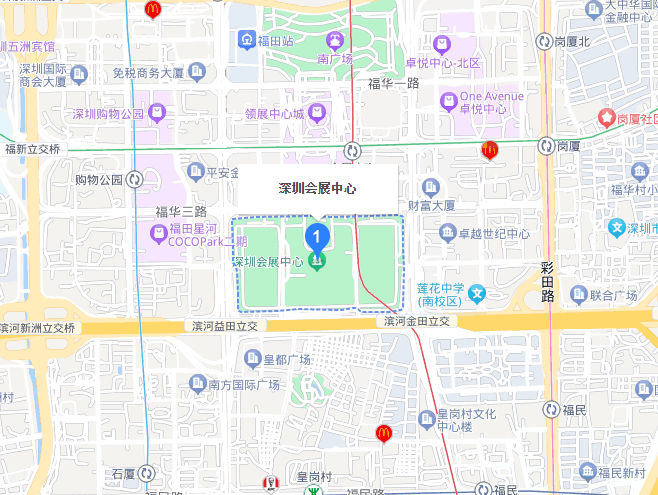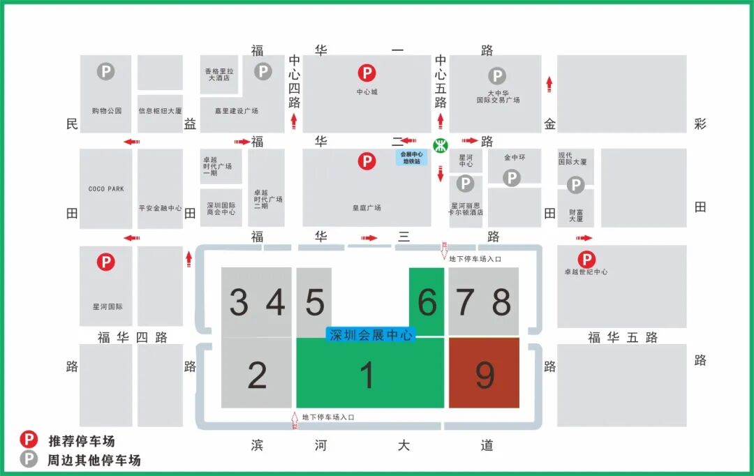 社会车辆可至深圳会展中心地下停车场、星河发展中心地下停车场、皇庭广场停车场、怡景中心城停车场、COCO PARK 停车场、卓越世纪中心停车场停车。