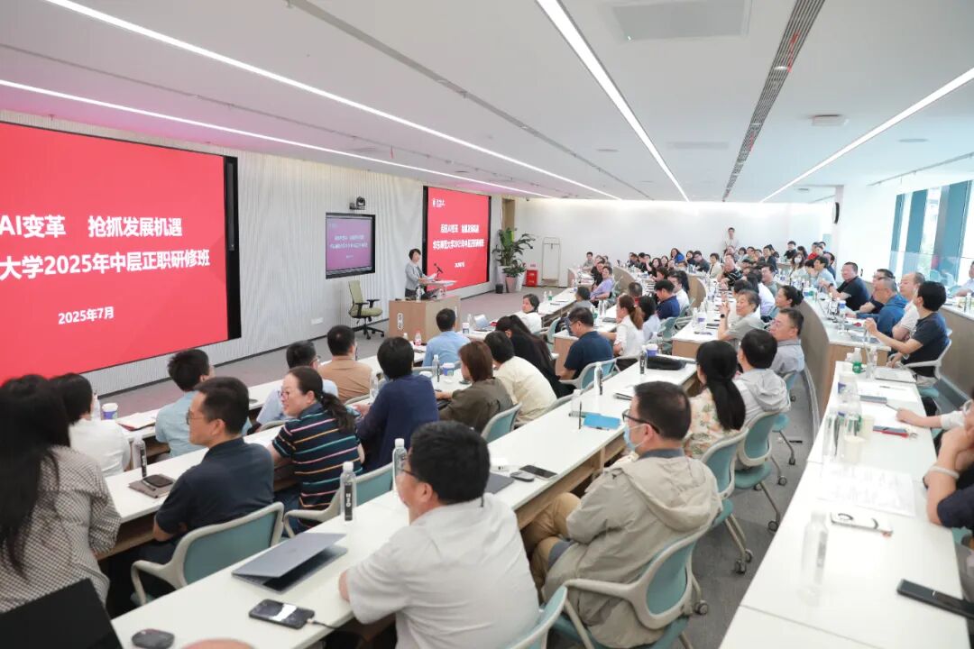 本次研修班深入学习贯彻习近平新时代中国特色社会主义思想,全面贯彻落实党的二十大和二十届二中、三中全会精神以及全国教育大会精神,深刻学习领会习近平总书记考察上海重要讲话精神,进一步提升学校中层正职干部因应AI变革、抢抓发展机遇的意识和能力,为对标教育强国建设目标、服务上海深化国际科创中心建设、谋划学校“十五五”高质量发展提供坚强支撑。校领导梅兵、钱旭红、曹友谊、孟钟捷、施国跃、程静、吴健出席。华东师大党委书记、党校校长梅兵主持开班报告并作结业讲话华东师大党委书记、党校校长梅兵主持开班报告并作结业讲话。她表示,自2021年起,学校党委每年结合党和国家关注的重大问题、学校阶段性的发展任务、干部履职能力的提升重点等,已连续5年组织中层正职干部研修。