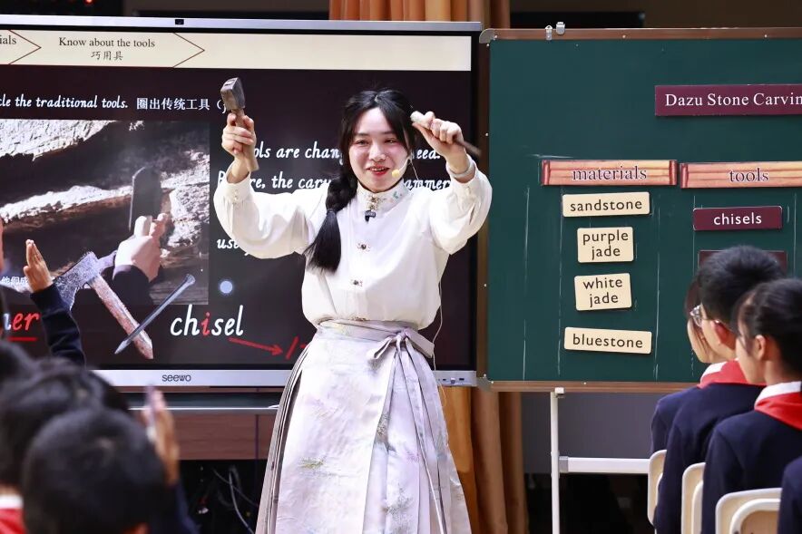 教师们在阅读课上通过任务型活动解码重庆非遗密码,让学生在语言实践中感受文化温度。“教育的使命不仅是知识传授,更是文化自信的播种”,教师们设计的非遗故事阅读、文化知识问答等活动,让文化自信在学生们心中悄然生根。