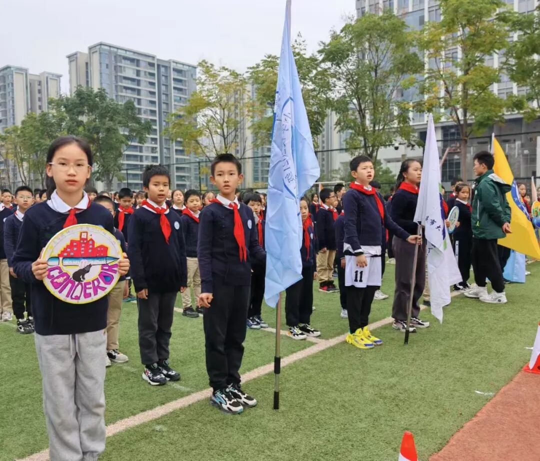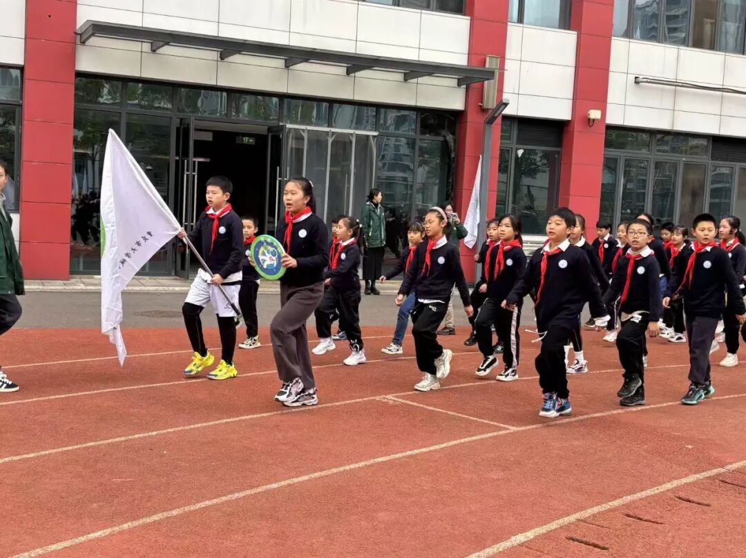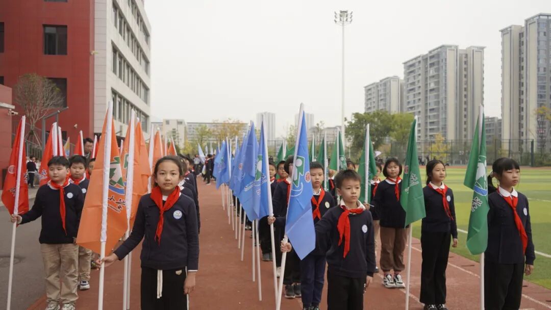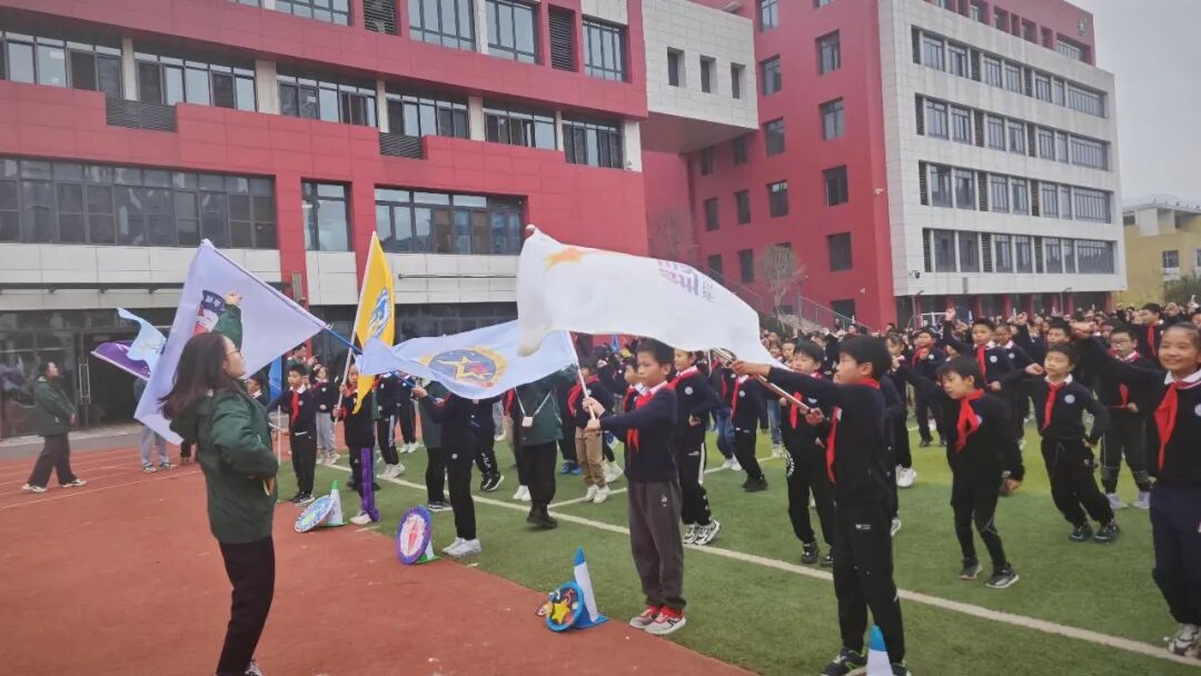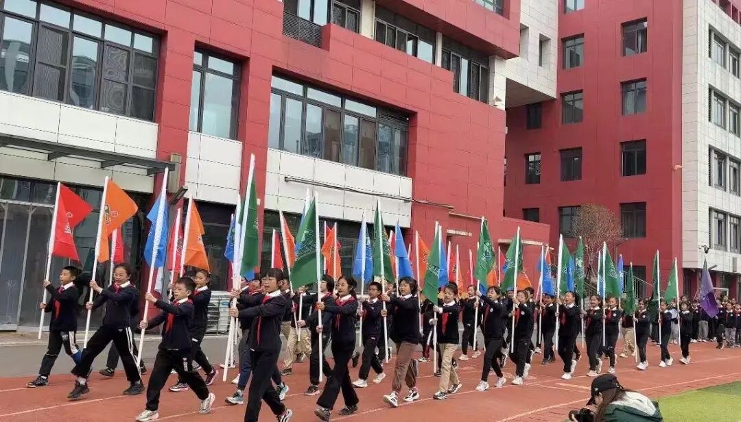 彩旗队率先出场,五彩斑斓的彩旗在风中飘扬,为运动会增添了一抹亮丽的色彩。
