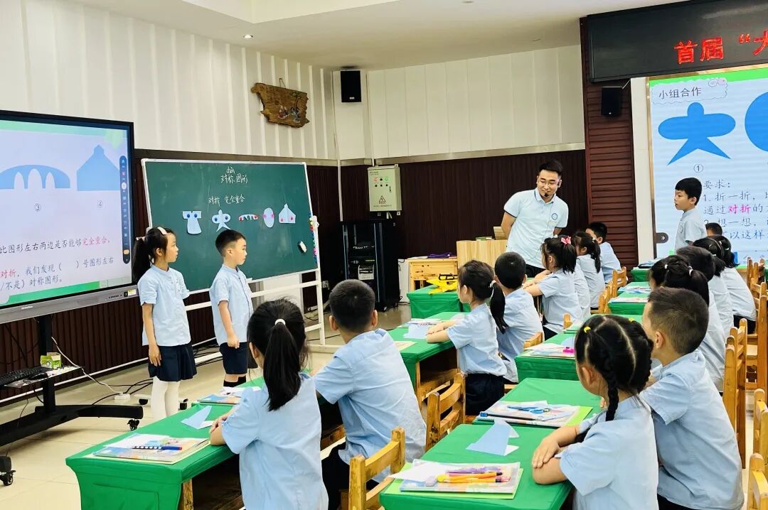 如何让学生在生长课堂主动发展?杨老师通过“折一折”“画一画”“剪一剪”等一系列动手操作让原本理性的数学课变得有趣起来。老师注重“五学”理念下对学生的观察、想象、语言表达能力培养。师生共学搭建的空间观念,让学生在感受数学的对称美的同时也了解了中华传统文化。