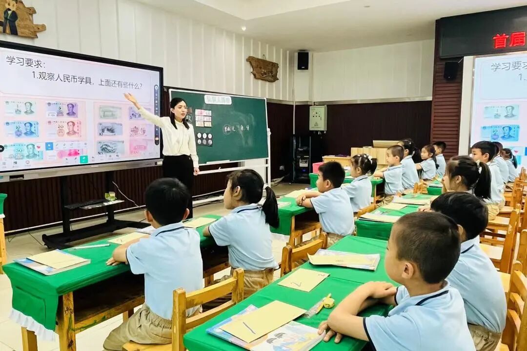 周老师从一年级孩子已有生活经验出发,通过“认一认”“说一说”“摆一摆”等活动,让学生认识各种面值的人民币,知道元、角、分之间的关系。通过人民币的文化,丰富学生对中国历史和文化的了解,整堂课渗透爱国主义教育,体现“铸牢中华民族共同体意识”。