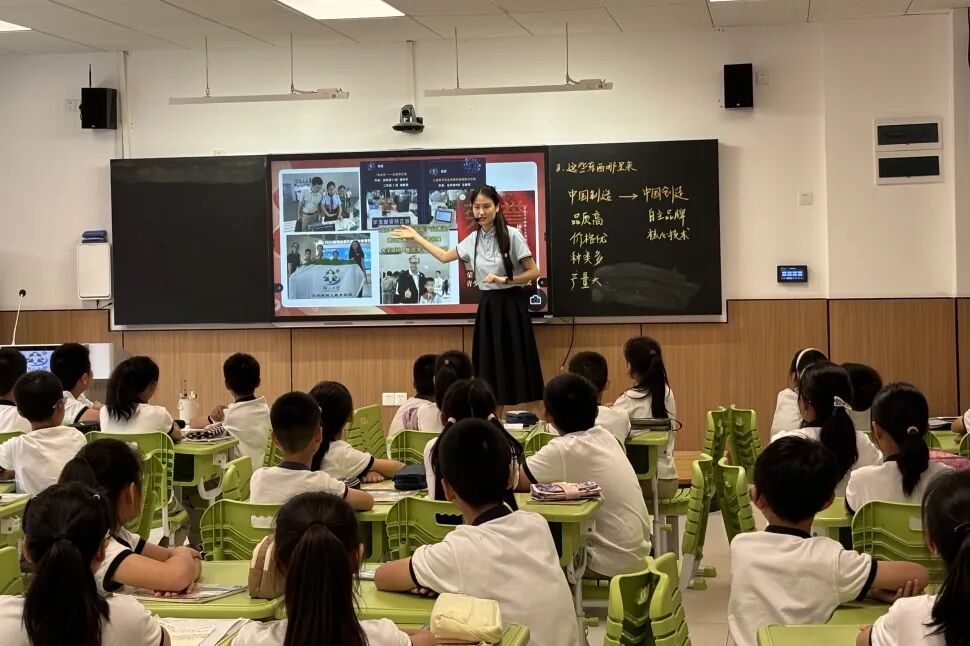 如何从制造到创造?许老师带着孩子们逻辑清晰地进行分析,进行层层推进,通过“寻找中国制造”“思索中国制造”“走进中国创造”“中国创造有我们”四个学习活动,深化了学习重点,又启迪了生长远点。在润物无声中唤起学生民族自豪感,培养学生的责任与担当。