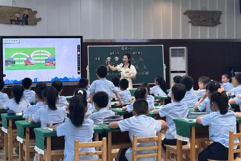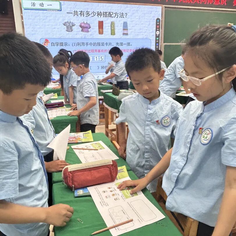 在民族大融合的情境下,龚老师引领学生们踏上一场别开生面的文化探索之旅。课堂通过深入挖掘傣族的传统服饰,品味特色美食及感知旅游线路中的搭配方法,充分去体会符号所代替表达的数学之美。这堂课,不仅教会学生有序思考,还从思考中不断总结方法学会了迁移。