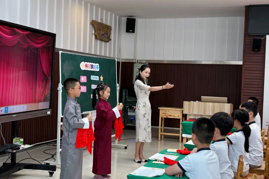 陈老师以快板表演引入教学,在读准字音、找准节奏、动作标准的评价挑战中,让学生充分感受快板艺术的独特魅力。在课堂表演中,既锻炼了学生的舞台表现力,提高了学生的语言艺术素养,又增强了学生的文化自信。从台下到台上,这样的沉浸式共学,真正看到了小树苗的“课堂生长”。