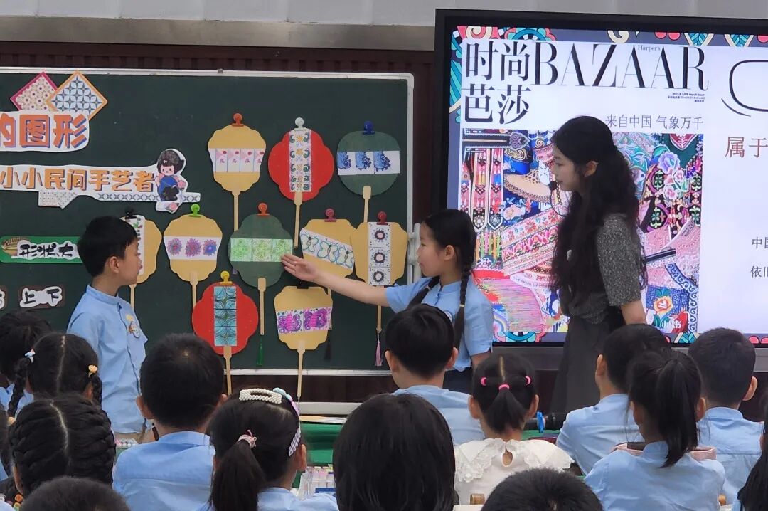 有趣的民族纹样博物馆的情境带学生走进了纹样的世界,认识了二方连续纹样并进行纹样设计,装点出一把把精美的团扇。通过认识和装点让学生体会了民族纹样所蕴涵的美好寓意,提升了学生的艺术素养,增强了学生对中华民族传统文化的认同感。
