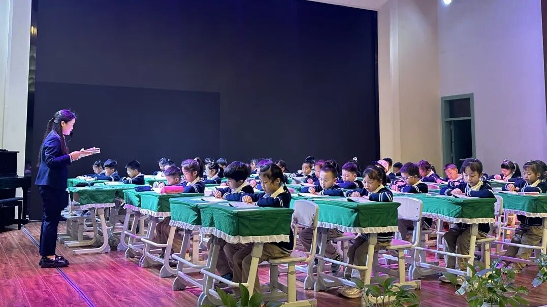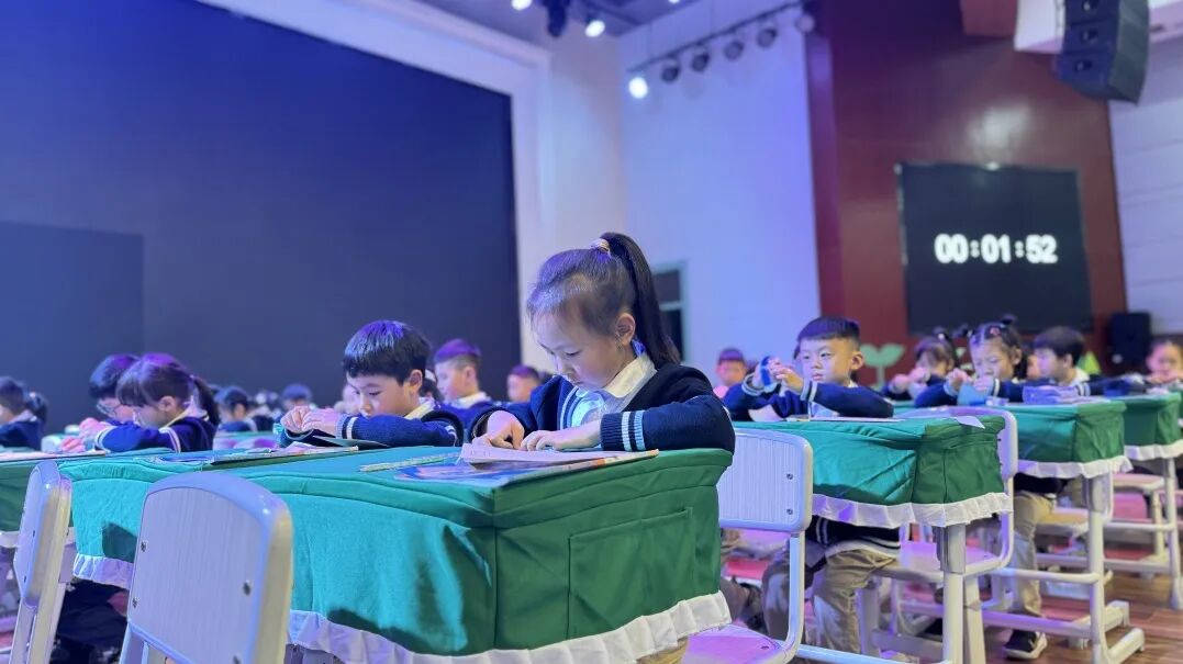 校园里的晨光犹如一首温馨的序曲,小朋友们陆续进入教室收拾好书包开始早读,他们一个个坐姿端正,左手压书,右手指字,以饱满的热情开始新一天的学习。