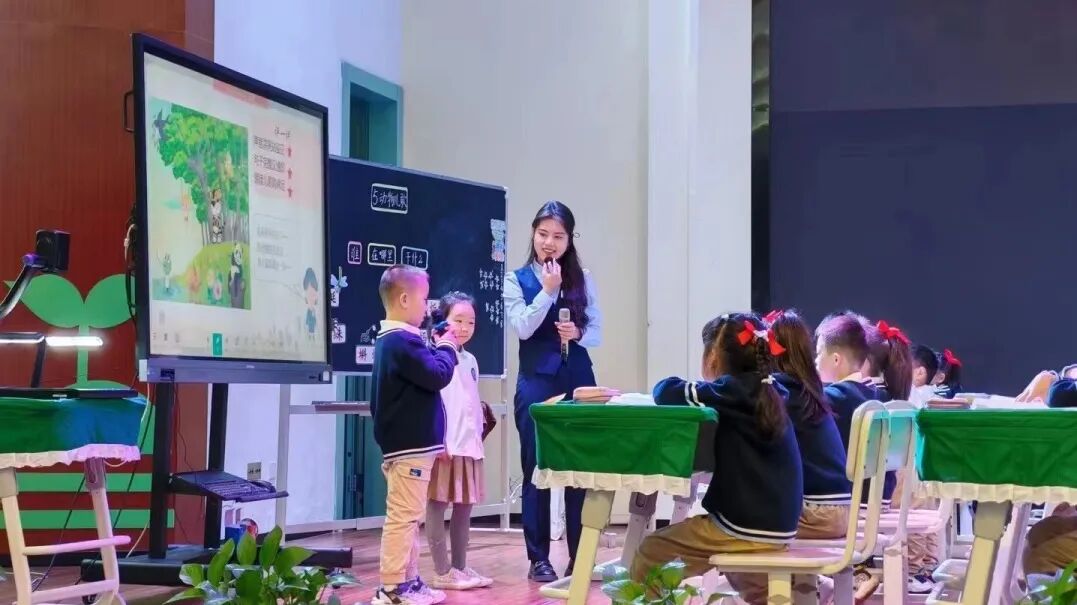 英语课上,终于可以展示每周认真练习的口语啦,听,我的发音多标准呀,快给我鼓个掌吧!
