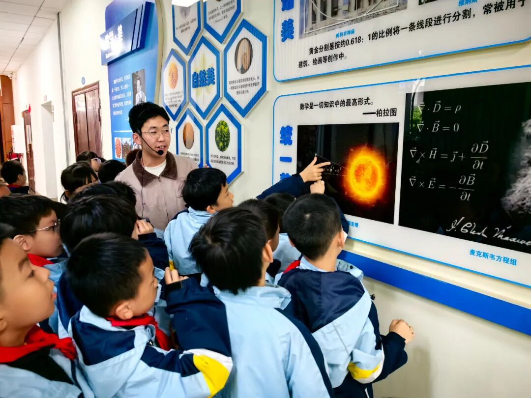 在这充满智慧的殿堂里,同学们穿梭于各个展示区域,感受着数学在不同领域的深度应用。原来数学是美的,它自然,和谐,简洁,又统一。数学让人猜想,数式各异又富有规律,是有趣的。从复杂的科学计算到实际生活中的工程难题,从前沿科研成果到日常应用实例,数学的多元魅力展露无遗,孩子们不禁对这门学科的深邃与广袤肃然起敬。