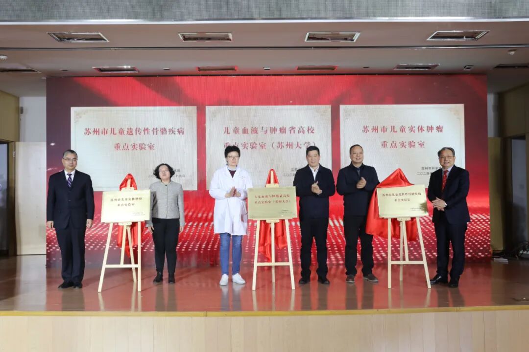 大会进行了重点实验室揭牌仪式。医院获批儿童血液与肿瘤省高校重点实验室、苏州市儿童遗传性骨骼疾病重点实验室、苏州市儿童实体肿瘤重点实验室。我院作为国家儿童区域中心建设单位、江苏省高水平医院建设单位,注重科技创新和学科内涵建设,科研能力不断向高水平迈进。