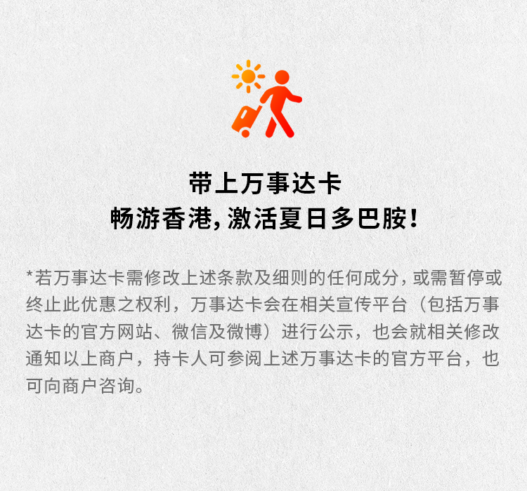 摘要:精选香港出行、购物、美食多重礼遇,更有机会享100%返现!