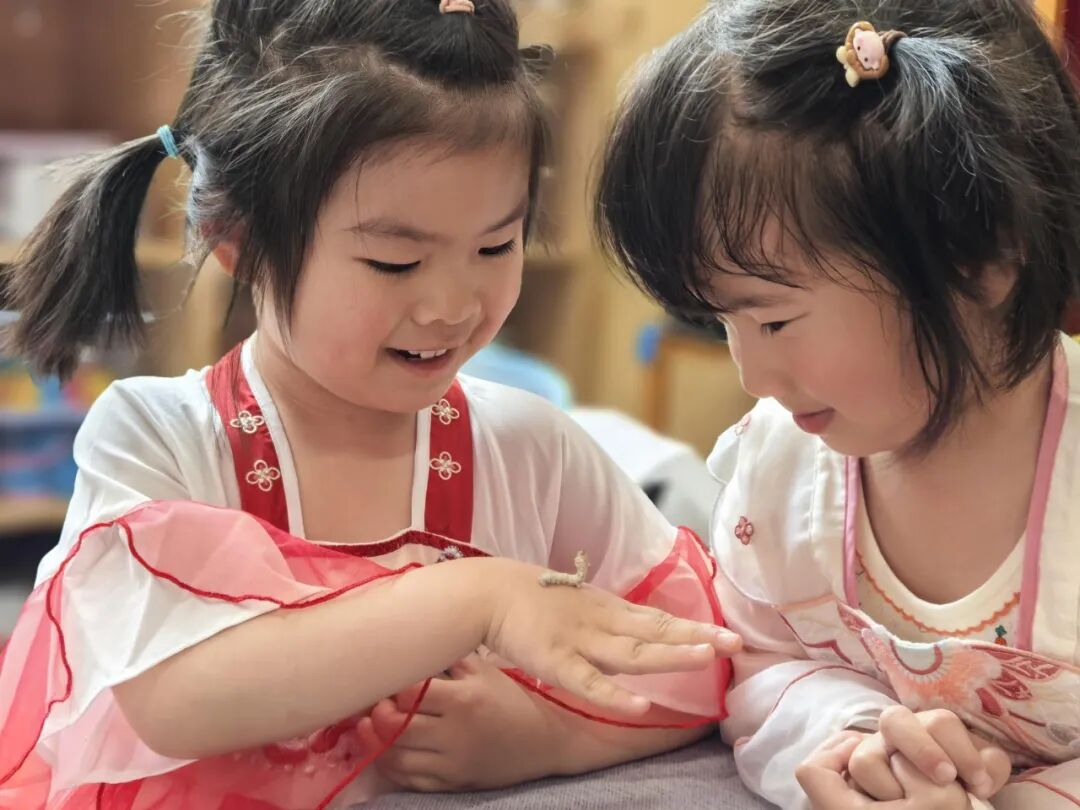 班级里的自然角是小宝贝们的 “探秘基地”!圆滚滚的小蝌蚪摆动着小尾巴,在水里游来游去;蚕宝宝正慢条斯理地啃食着桑叶,沙沙作响。孩子们趴在窗台,眼睛一眨不眨,充满好奇地观察着这些小生命的一举一动。