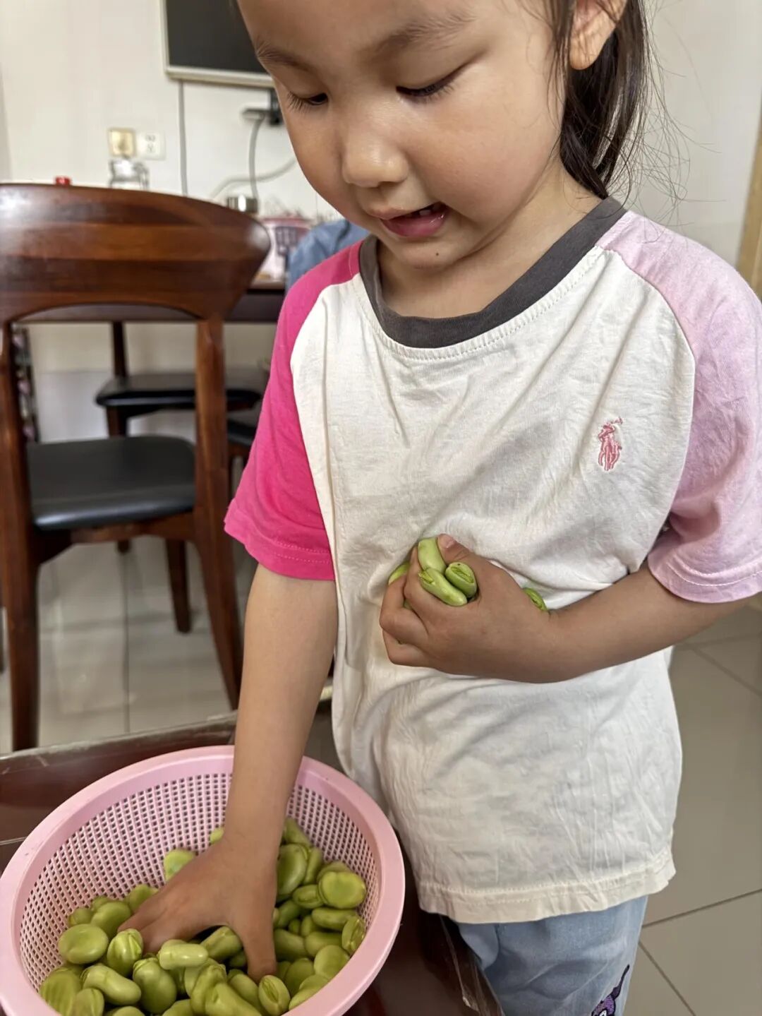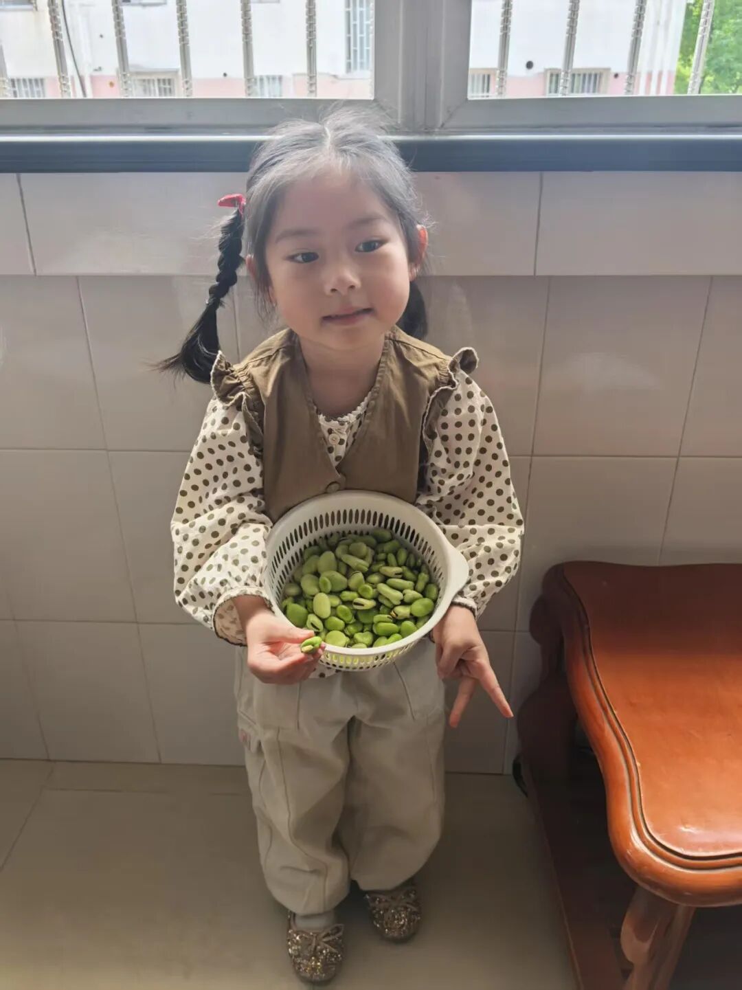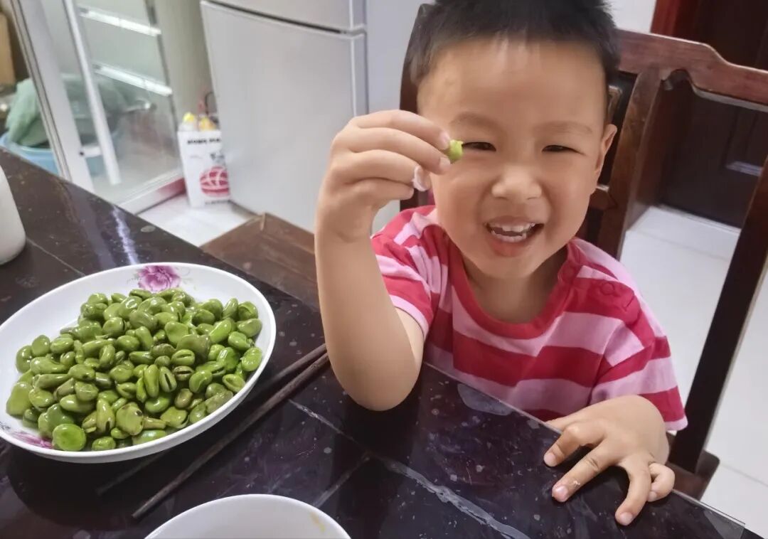 立夏时节,怎能少了美食相伴?小宝贝们回家后,和家人一起体验剥蚕豆的乐趣,一颗颗饱满的蚕豆从豆荚中 “蹦” 出。