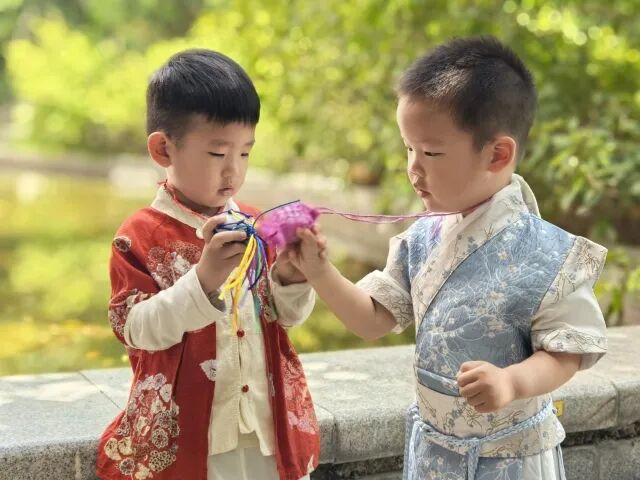 挂蛋、斗蛋可是立夏的经典习俗。爸爸妈妈提前为孩子们准备好了五彩斑斓的蛋袋,孩子们小心翼翼地把彩蛋放进蛋袋里,挂在胸前,仿佛在守护着最珍贵的宝贝。
