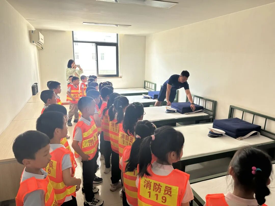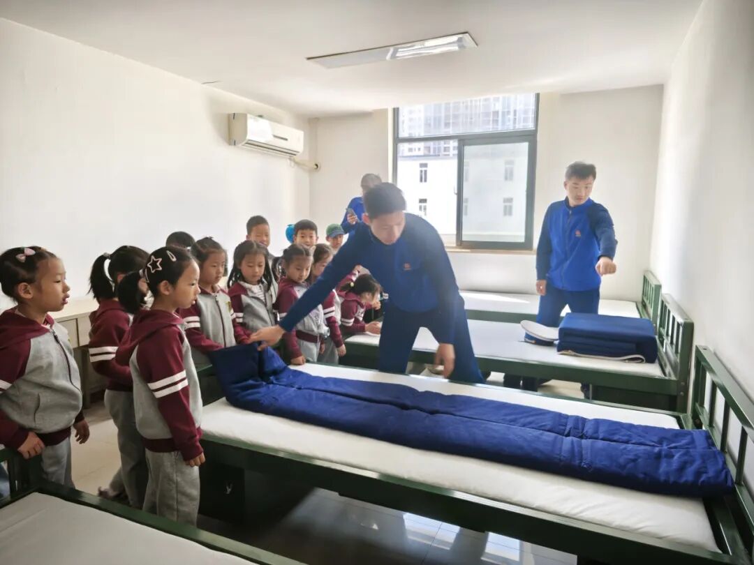 消防员叔叔向大家展示了干净整洁的宿舍,豆腐块般的被子、排列有序的物品,引起孩子们连连惊叹:“哇,好像魔法!”原来,消防叔叔不仅是救火英雄,还是生活里的“整理小能手”!