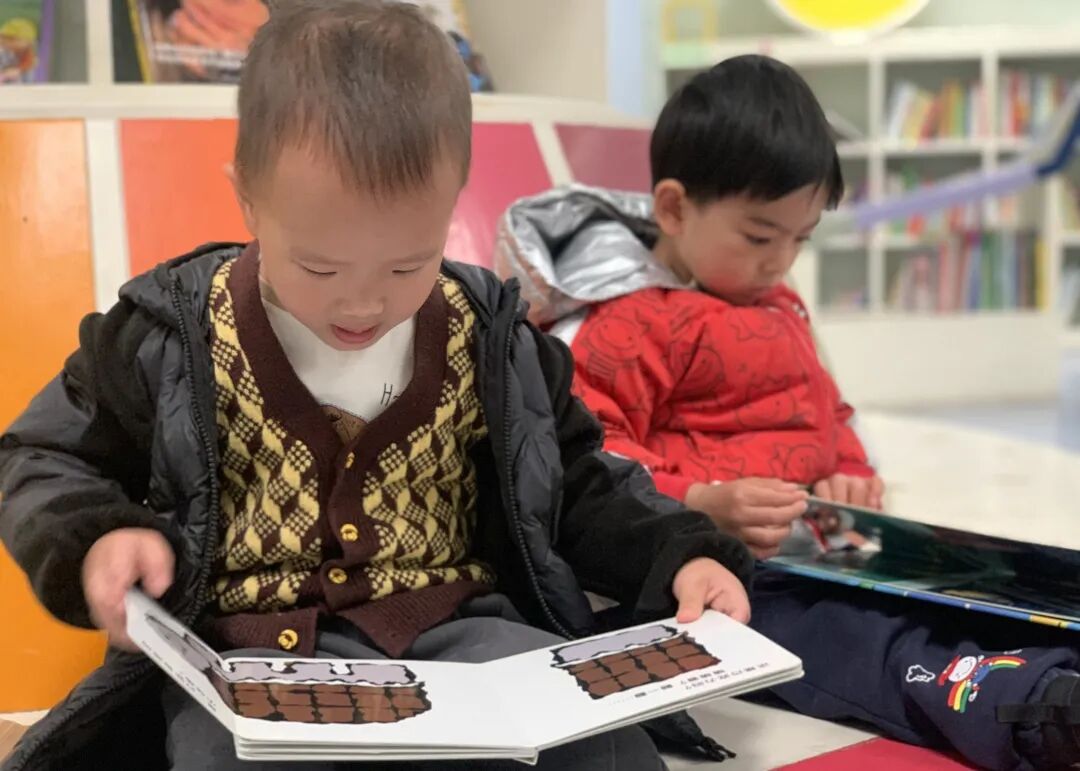 每周一次,孩子们会来到幼儿园的公共图书室,和好朋友一起借阅图书,共同阅读。大家围坐在一起,分享书中的故事,笑声和讨论声充满了整个图书室。