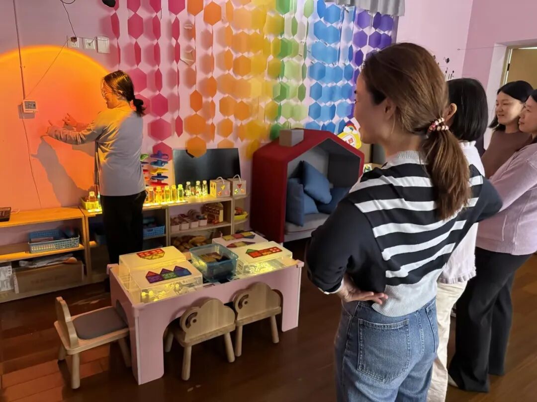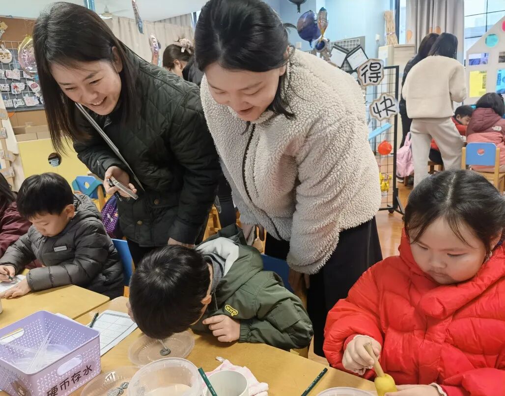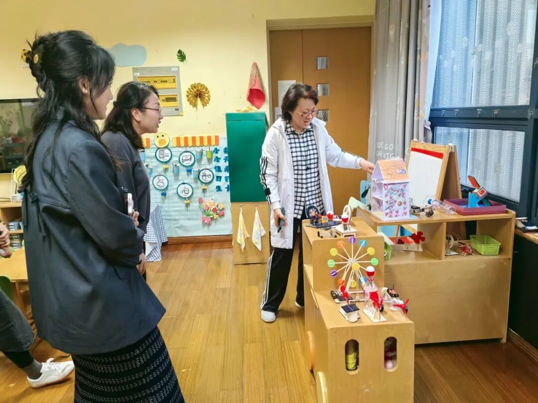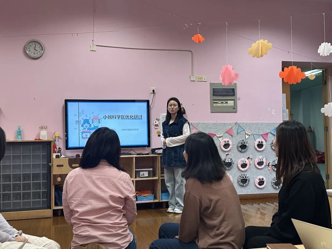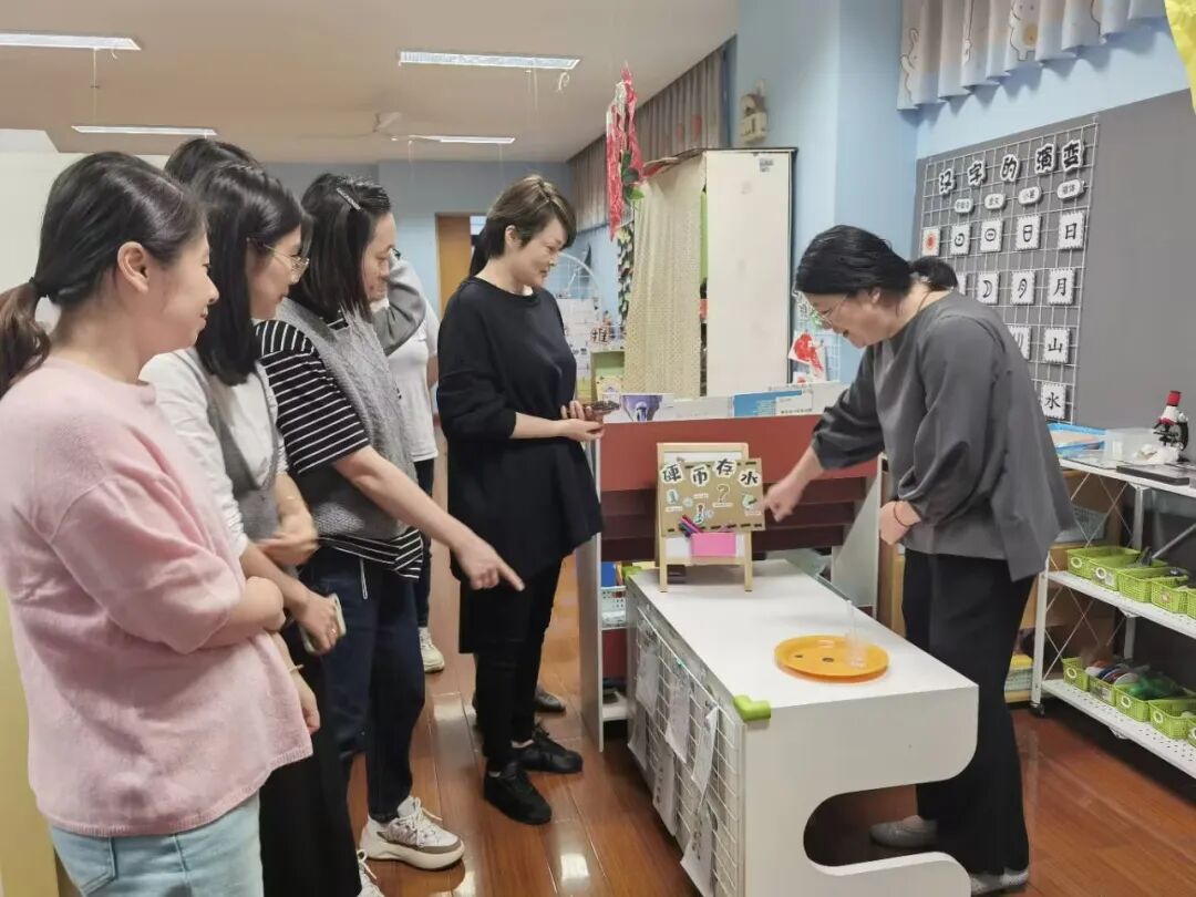 老师们首先结合理论分享,深入探讨了科学区域的合理设置。从区域的规划布局到有效材料的提供,再到问题导向的创设策略和问题线索的引导方法,老师们进行了充分的交流与学习,并开展了年级组科学区域现场观摩。
