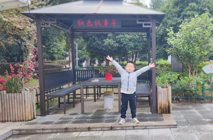 喜宝:小区中间的小亭子最漂亮,累了还可以在里面坐着休息。