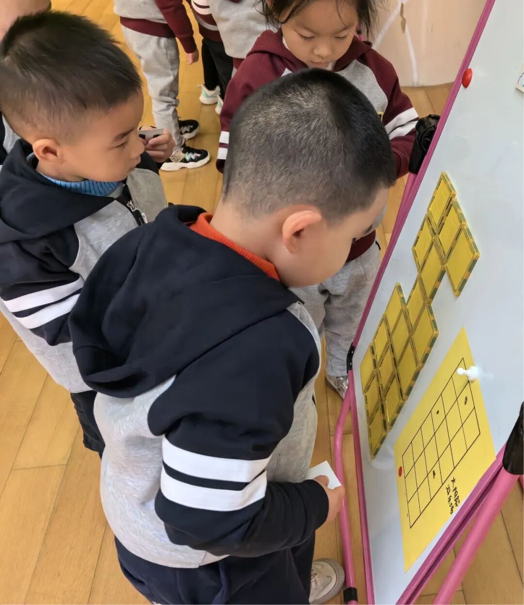寻找问答卡拼图环节,十分考验空间方位认知,对中班小宝贝来说难度不小~