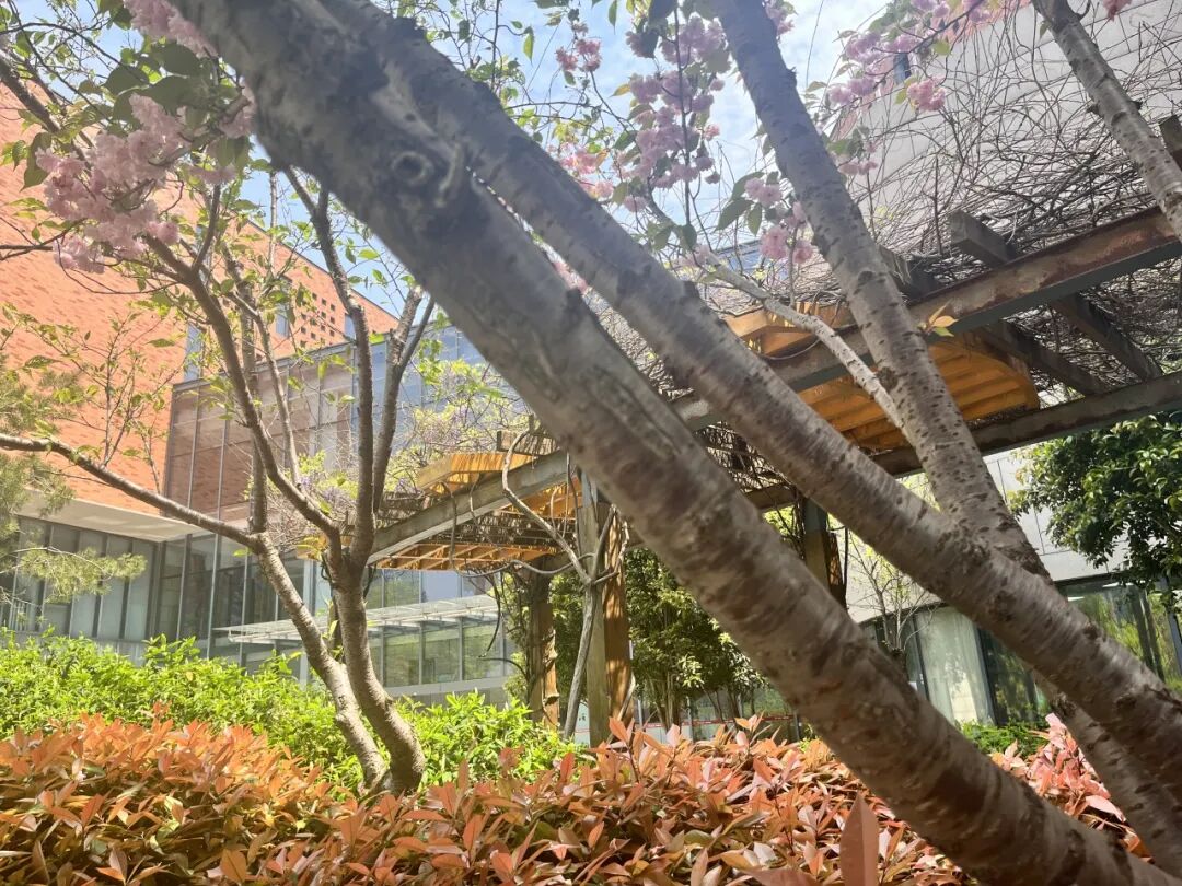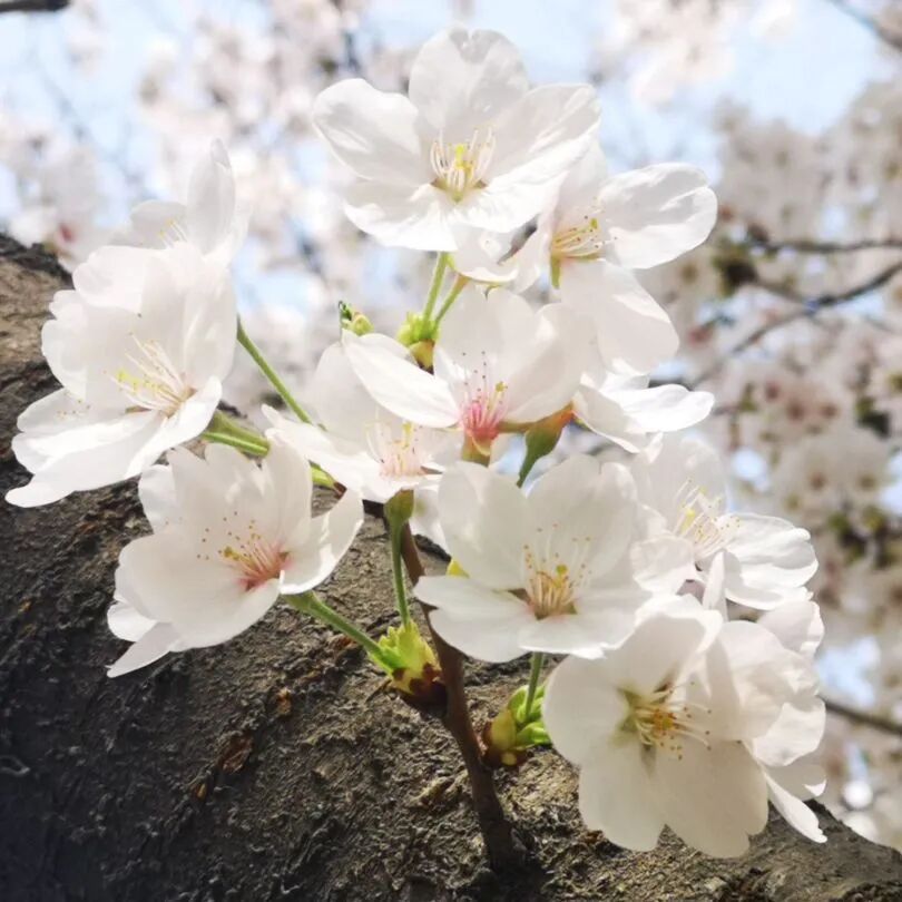 “桃樱梅棠,都属于蔷薇科大家族,所以很像。不过,樱花的花瓣尖端有一个小缺口,还有樱花的树皮上有很多横纹,叫皮孔线。”