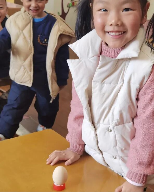 “我把蛋放在笔盒空隙处,蛋立起来了。”