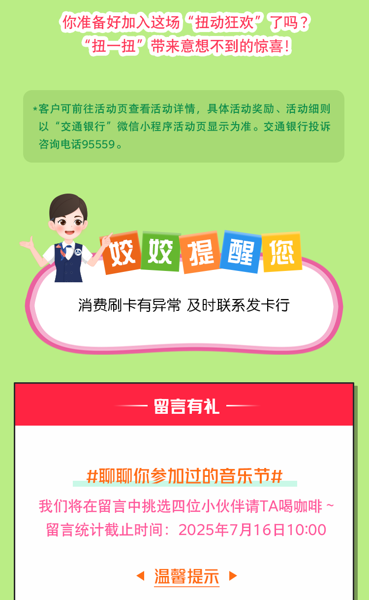 文章内容来源于公众号:交通银行微银行,点此可查看原文,内容版权归相关企业所有,本网站仅供交流学习。若涉及版权问题或存在侵权情况,请及时与我们联系,我们将第一时间进行删除处理。