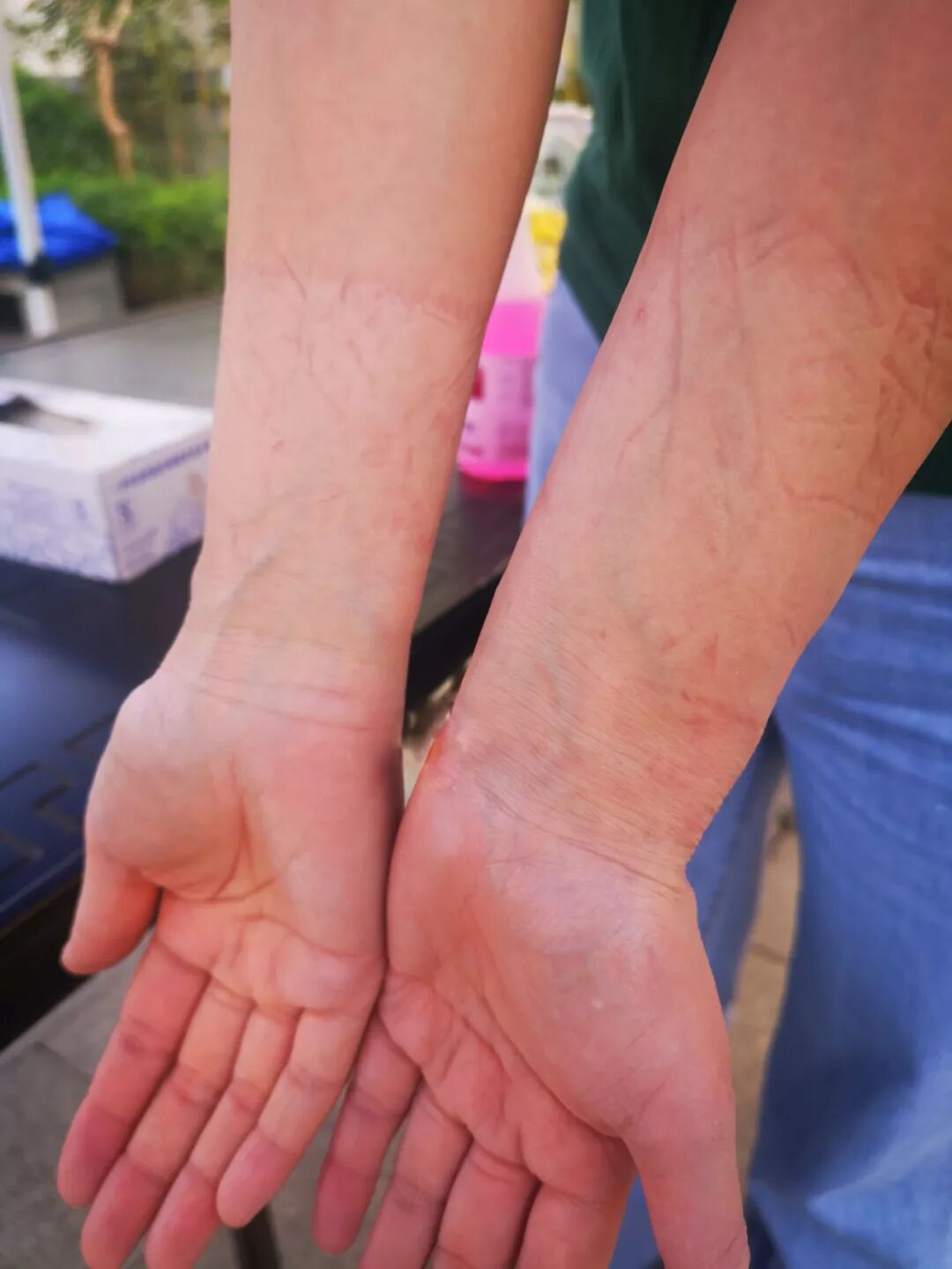 在手臂上压出了一道道印痕