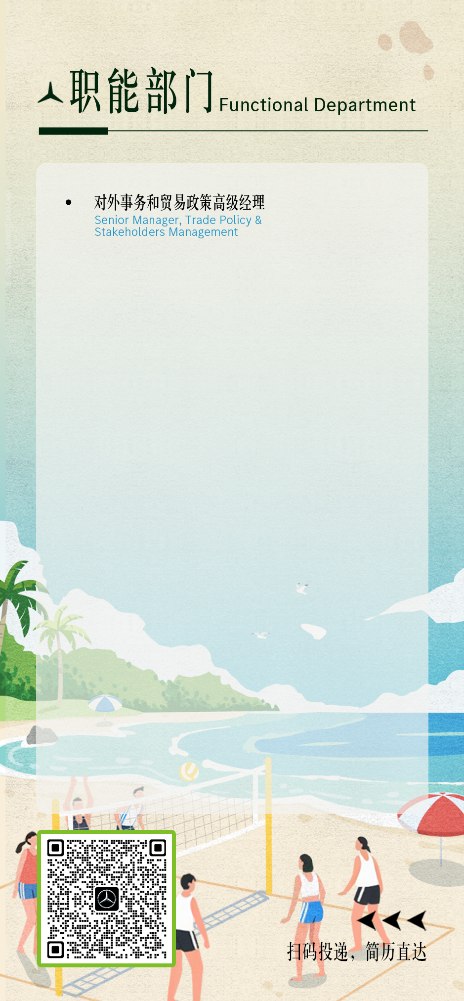 文章内容来源于公众号:梅赛德斯-奔驰招聘,点此可查看原文,内容版权归相关企业所有,本网站仅供交流学习。若涉及版权问题或存在侵权情况,请及时与我们联系,我们将第一时间进行删除处理。