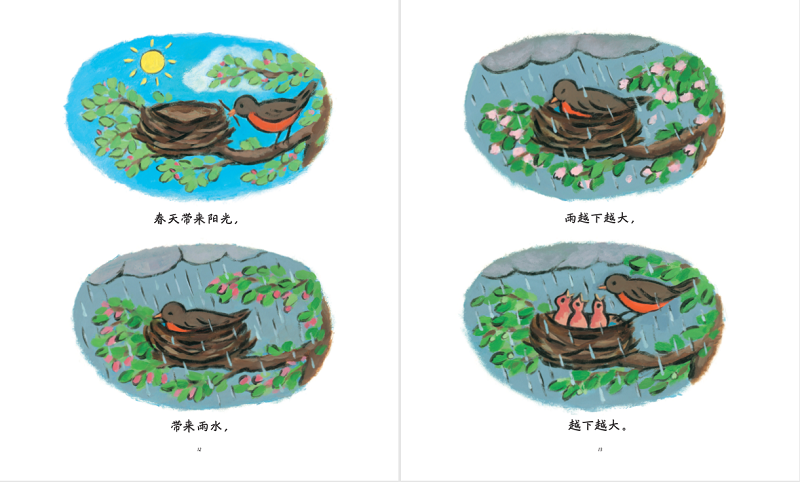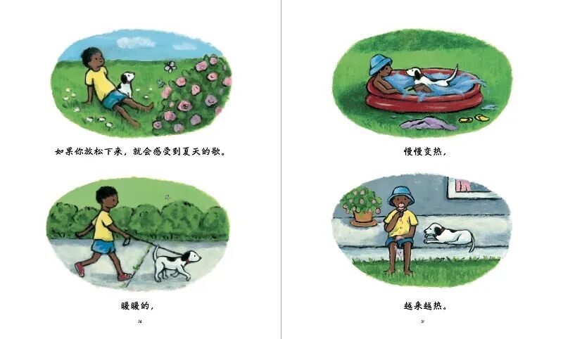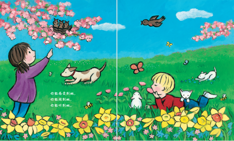 在这个冬天,挑一个阳光洒进书房的午后,沏一杯暖暖的茶,陪孩子一起翻开这套书,去感受春天在花丛中吹泡泡的欢乐、夏天绿地虫鸣之间的微风,回忆秋天那甜滋滋的柿子、南瓜、红苹果,顺便期待一下今冬第一场雪的模样……相信,等下一轮四季到来,孩子会拥有更敏锐的洞察力和更深刻的感悟,也更能感受来自大自然的最原始、最纯真的快乐。这些快乐会种在孩子的心底,随着爱的浇灌生根发芽,最终成长为一棵能给心灵遮风挡雨的大树,赋予孩子无尽的力量。