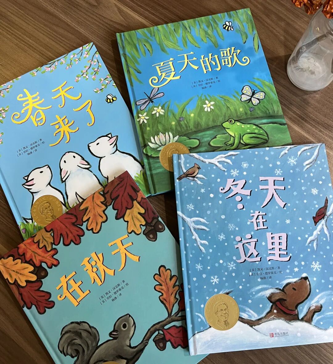 《凯文·汉克斯四季绘本》就是连接孩子与自然的一个很好媒介。作为曾获得过三次凯迪克大奖、两次纽伯瑞大奖和两次苏斯博士奖的世界著名绘本大师,凯文·汉克斯和他的妻子劳拉·德罗兹克,以生活观察家的视角,用《春天来了》《夏天的歌》《在秋天》《冬天在这里》四本精美绘本,细腻地描摹了独属于每个季节的色彩、声音、气味和触感,让孩子们通过稚气童趣又清新灵动的画面,在赞美诗一样有节奏感的语言中认识四时万物。